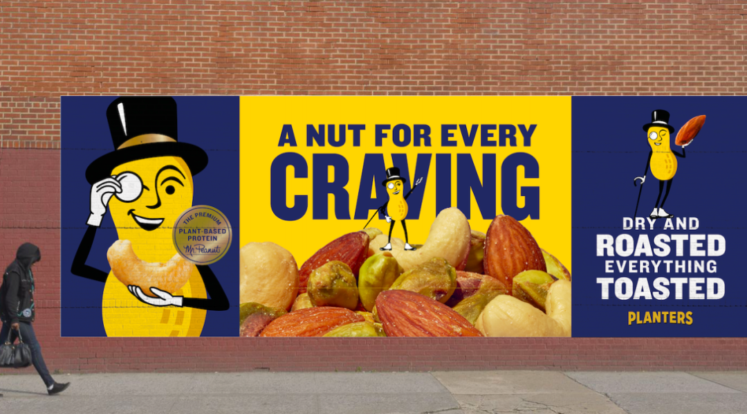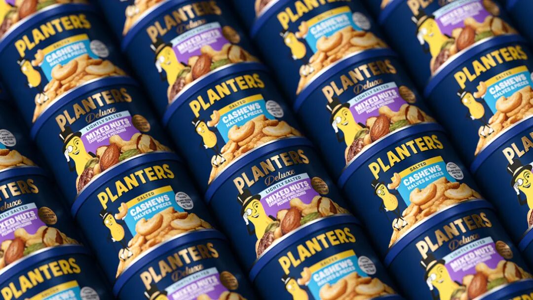 字标也更新了,收紧了焦点并使其更接近观众。更新的包装采用了坚果和其他成分的奢华和诱人的新照片,而更深和更深的蓝色被引入品牌调色板。最后,Planters 还在包装和广告中强调其产品是植物性蛋白质来源。