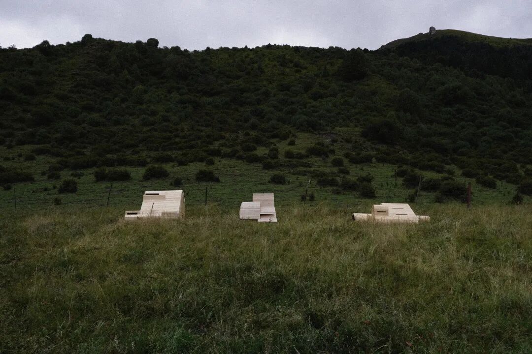 这个装置的设计基于空间类型学,将动物(啮齿类动物——土拨鼠)作为主角进行研究分析。反常规的仅将 “动物”作为转译对象进行研究转为以其作为空间“主人”进行探索并形成更具特色的空间形式与类型。基于尊重与保护,构建了土拨鼠休憩空间,考虑到岩穴类动物的行为特点和聚集性,空间由大小中三个装置组成,分布有卧室、客厅和活动场所,为不同物种的尺度空间完善想象力。