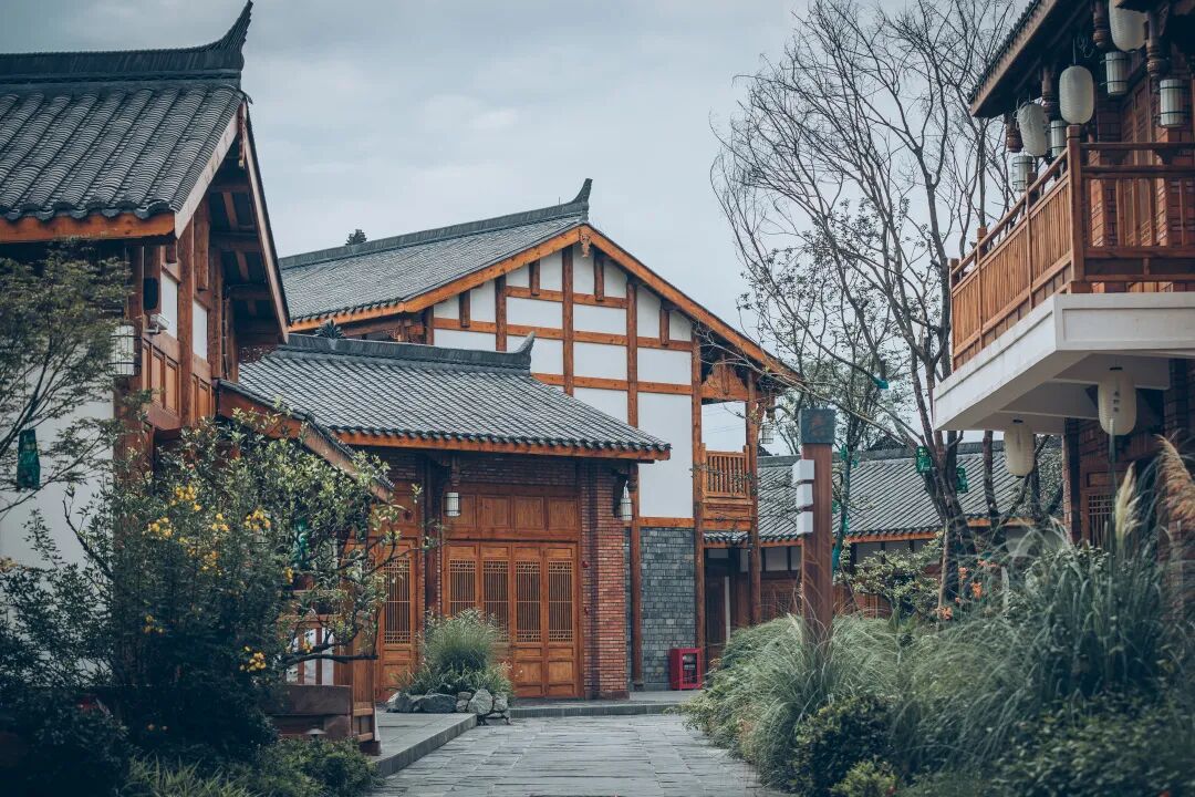 天府官塘以“小村落、传世界”为打造理念,通过“微介入”的改造策略,沿用中国古建筑规制,保留原始房屋结构,从川内其他地方采集川西民居古建材,最大程度保留村落田、林、水、院的川西林盘风貌,展现川西民居的独有特色。同时深度整合在地文化,形成安麓酒店、非遗文化主题院落、市井街巷、稻田景观等特色场景,让现代与传统共构、繁华与生态共享、雅致与烟火共融。