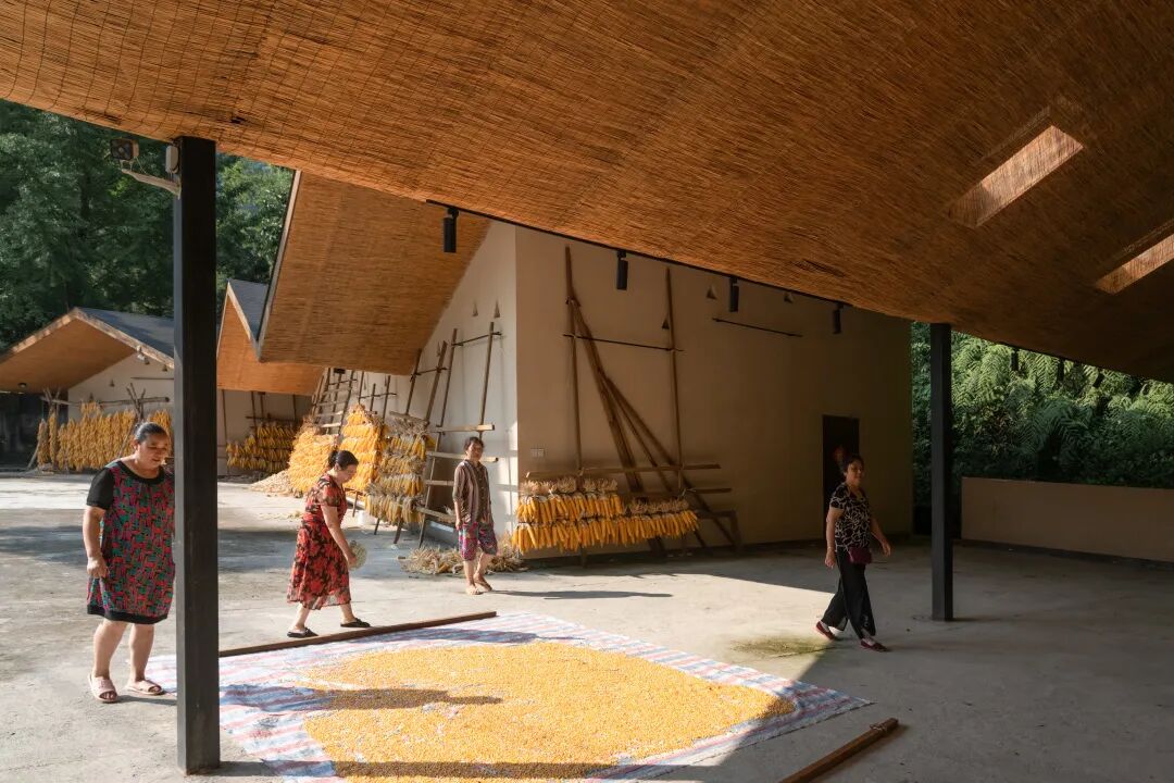 场域建筑对一组八十年代砖木结构豫北风格建筑群——修武县大南坡村大队部建筑群旧址进行了改造。改造完成后的建筑群具备吸引外来访客的多个空间,如展示本地风物的大南坡艺术中心、销售本地土特产及艺术商品的碧山工销社、供外来访客就餐的本地食馆、服务村民的社区营造空间、供当地“怀梆戏”艺术团成员和爱好者准备的排练室及戏台,和欢迎所有人的学习、阅读及交流的空间——方所乡村文化。