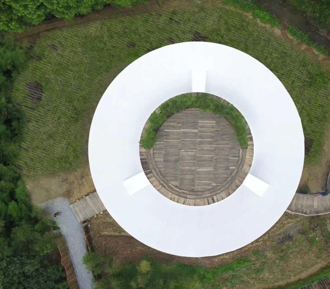 然后我们决定将六个帐篷把它结合在一起,做成一个圆形的环形,提供更多的空间,让社区和营地进行互动。这样的话,环状的空间可以环绕起来,同时成为一个平台来进行一个有机农作的教育平台、孩子学习平台。