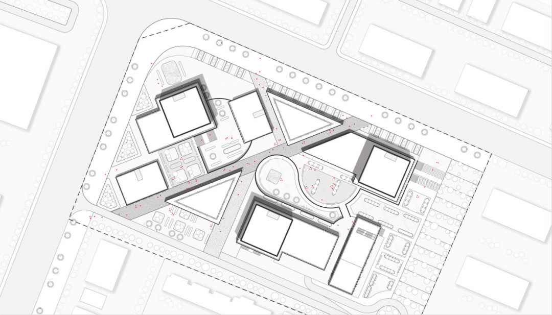 所以我们想去做一个颠覆性的设计,一般来说,我们大部分见到的都是标准的南北朝向高层住宅,我们不想再做这种南北朝向的住宅小区,因此我们想用这种新的方法来设计一个住宅小区,可以看到我们的建筑都面向了不同的朝向。