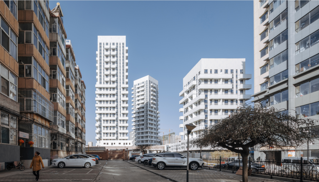 我们和之前的客户在旁边的地块上也做了一个项目,他们要求我们去设计一些和大部分住宅不一样的住宅楼。