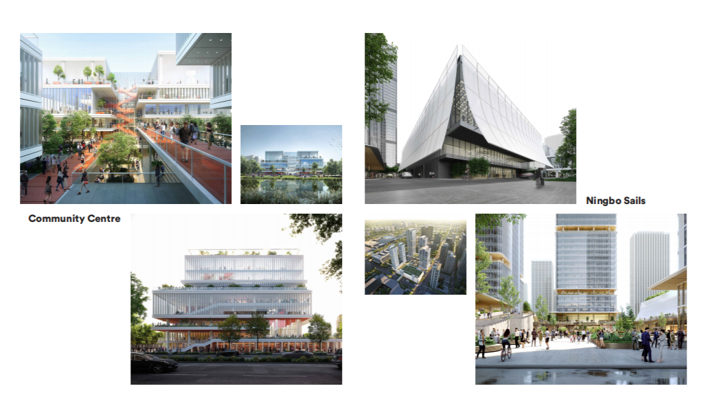 在这里简单地给大家介绍下近期我们的项目,有位于杭州的Sky City,目前基本上完成了;还有Well Living Lab,这是我们设计的第一个实验室,实验室是做用来改善工作和生活环境条件的一种生物传感器;我们的业务也包括一些社区中心,大型主体建筑的设计和内装。接下来我将会介绍几个我认为比较有意义的项目,以及如何把这种超级策略放在我们的设计当中。