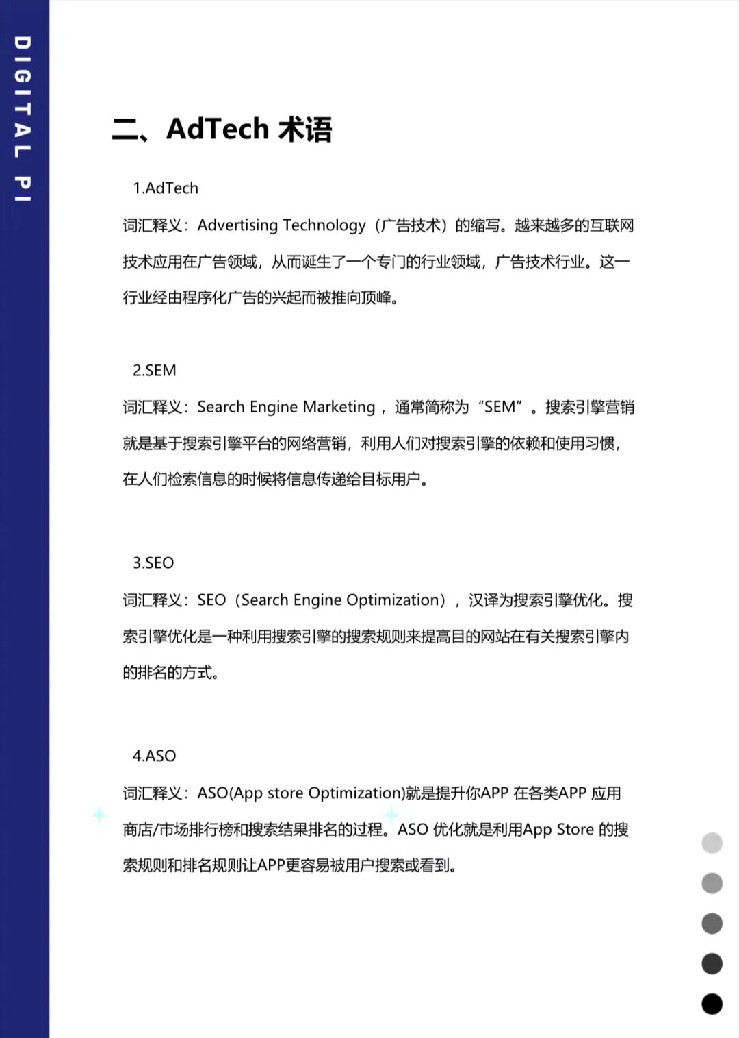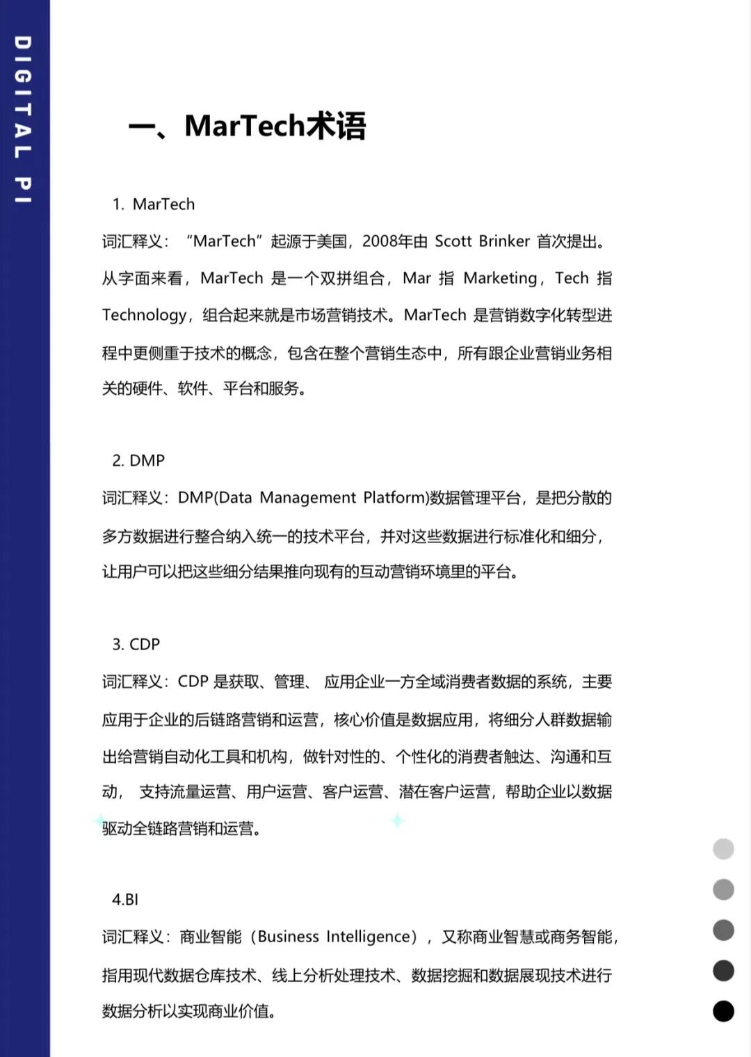 DP编辑组整理编辑了包括MarTech术语、AdTech术语、电商营销术语,IT术语、SaaS领域五大维度术语,进行了简单的释义整理,并将其整理成了《营销技术专业术语词典》,今天这本词典终于迎来了正式发布!希望能对大家有所裨益!