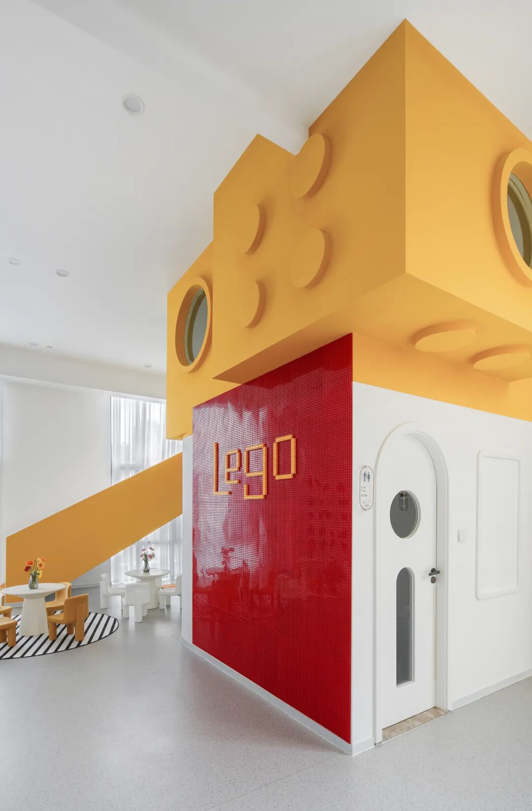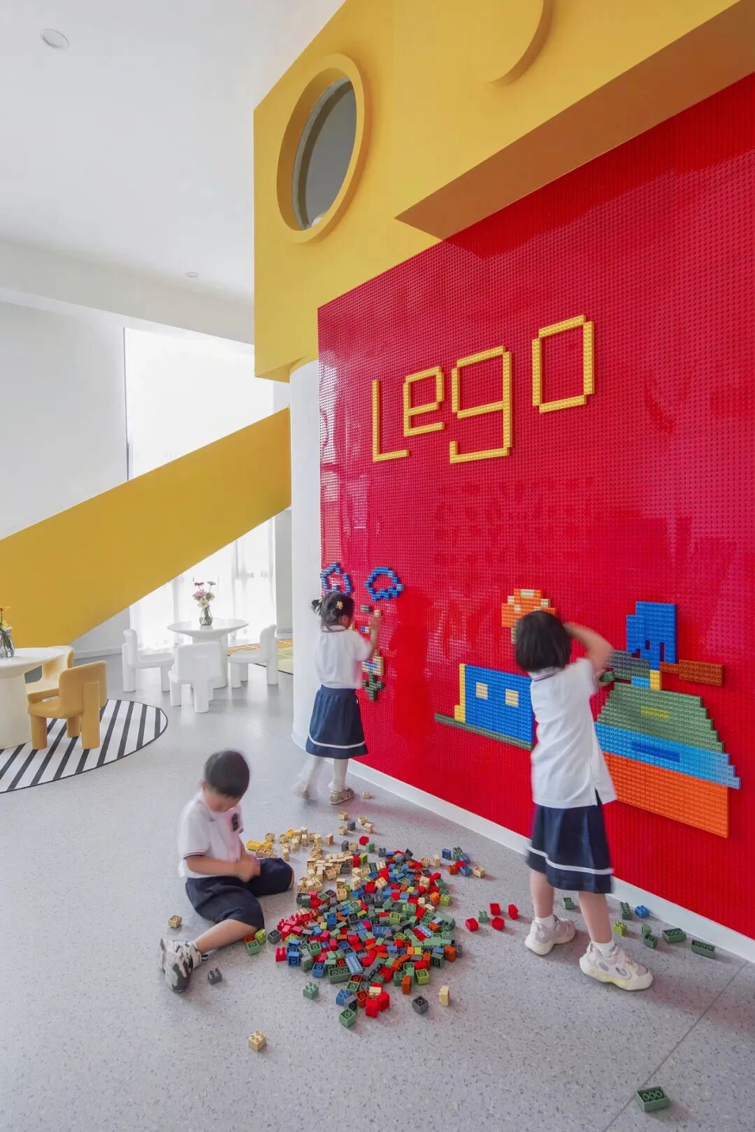 乐高墙体沿着走廊布置,吸引孩子们入内一探究竟,环境不自觉的在引导人们的行为,在项目细节处理上,空间设计了很多基于儿童安全角度的细节,如对儿童友好触感的建材,根据儿童身高定制的家具,如守护者一般,希望儿童在其中,能感受到陪伴。