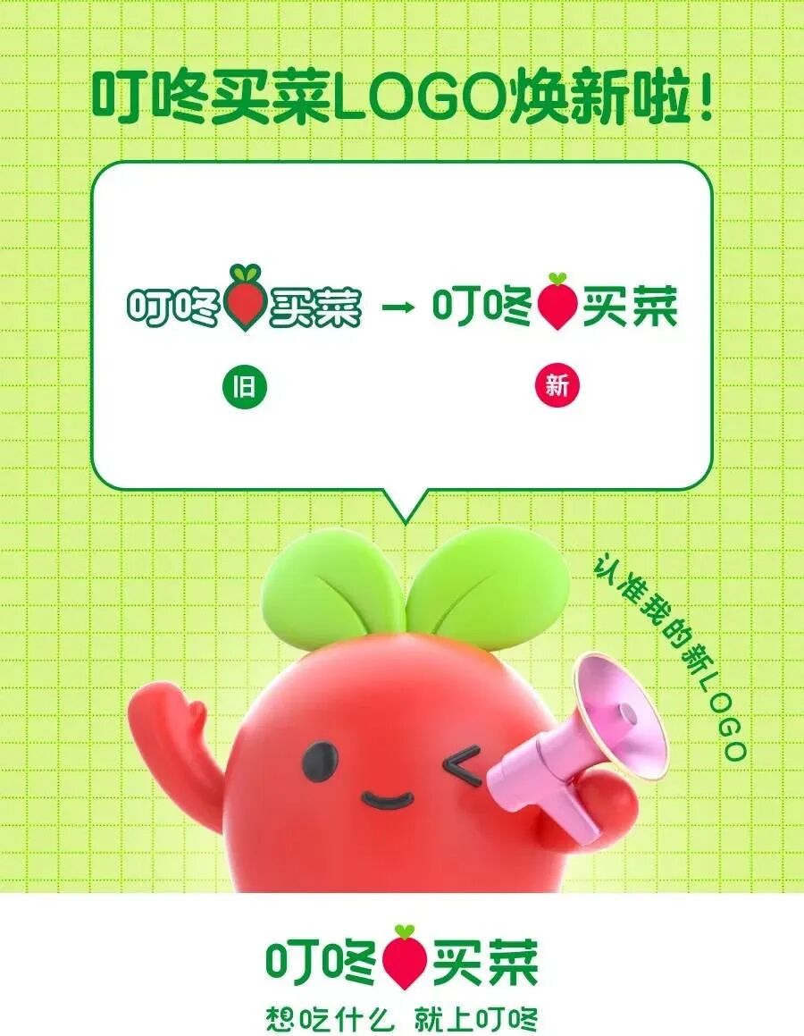 品牌口号从此前的【29分钟鲜到鲜得】变成更加直接的【想吃什么 就上叮咚】