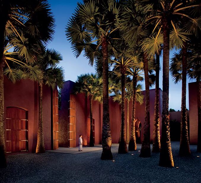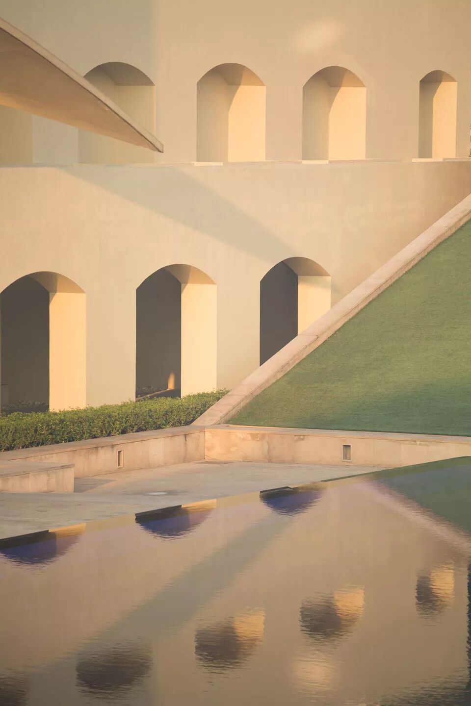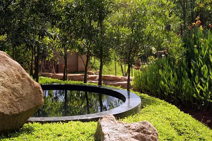 我们做了印度庭院的分析和学习,也得知了庭院这个词是源自于波斯人的一个庭院空间,同时了解到天堂这个英文词是跟庭院有关系的,因为天堂这个词在古波斯文来说,意思是有围墙的花园。在度假酒店中,景观设计需要有很高的美学跟空间上的承载,在有限的空间里创造完美的天堂。