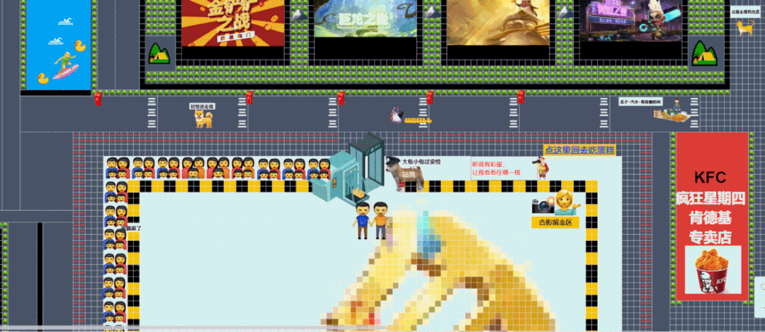 在会场中央,被人群簇拥起来的是“金铲铲”的“铲”,由于截图截不全只能录制鼠标滚图了,可以看到不少落实了二胎政策的家庭们正在有序排队地往里进入,看来即使是线上展会,也免不了排队的老传统,只能说我们金铲铲实在是太热门辣!