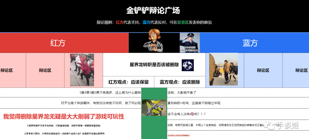 那么首先来到的是辩论区,又名拱火区,可以看到玩家们在对游戏做出一些非常有建设性的想法,大家说话都非常儒雅,我们再去别的地方看看吧。