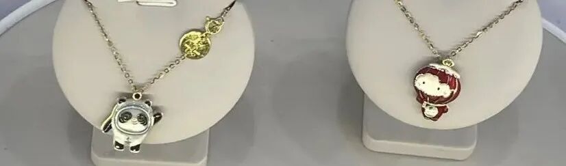 冰墩墩相关贵金属也是目前店里唯一能买到的。这对18k金和贝母材质的冰墩墩雪容融,加起来售价上万。