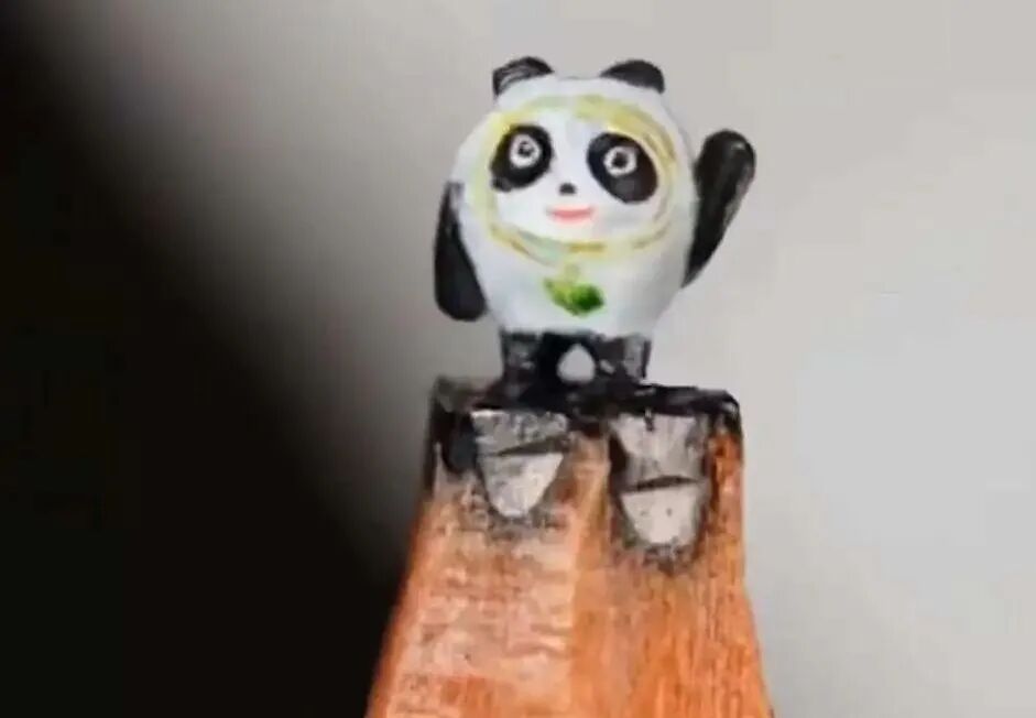 来自河北保定的95后小伙,在铅笔芯上雕刻出了3毫米的mini版“冰墩墩”;