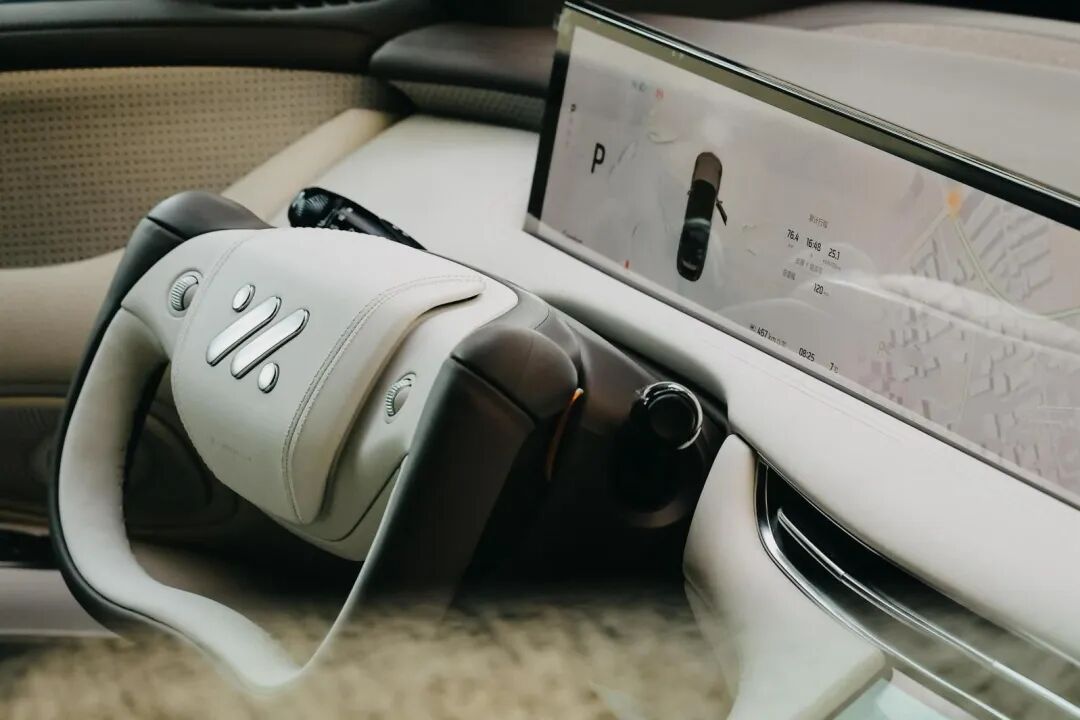 包括应用在量产车上尚属新鲜的“YAT巡航型半幅方向盘”,都是为了提升用户在可升降屏幕交互过程中的视野,更加通透,没有阻隔。
