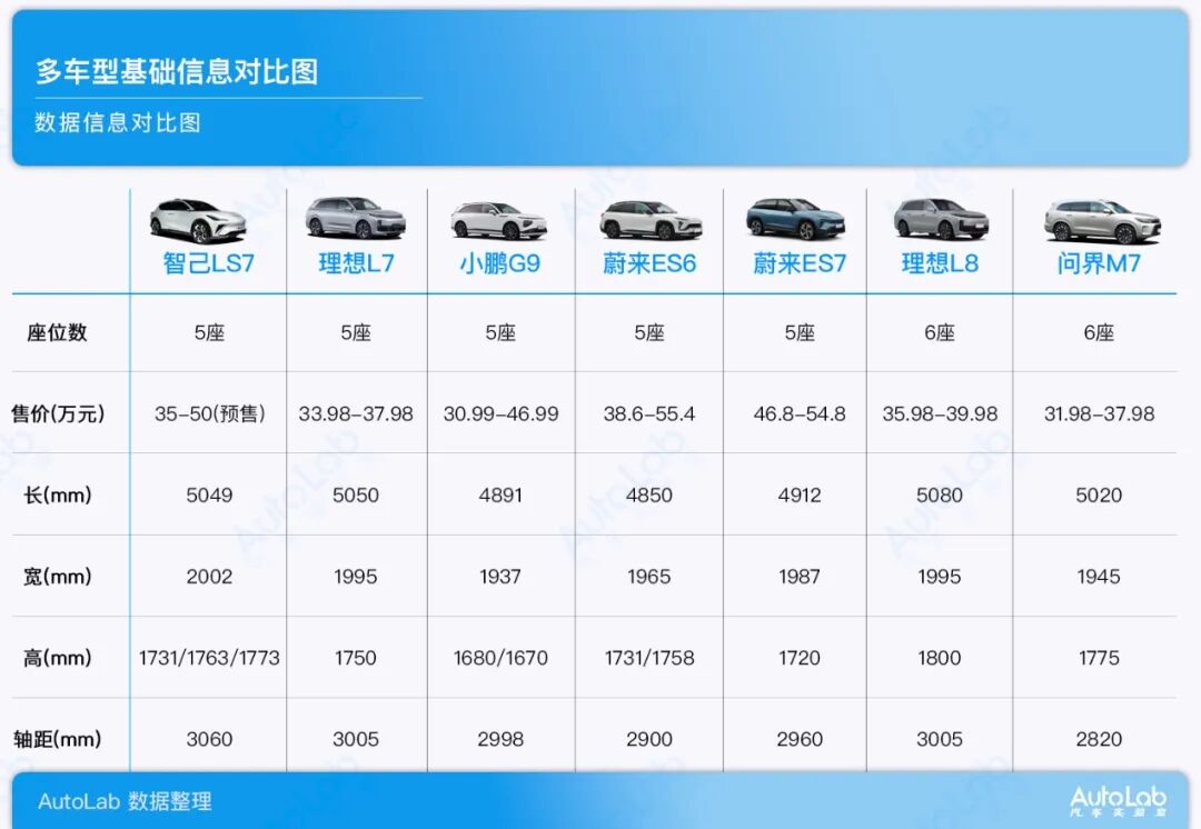 所以如果仅从尺寸上来看售价的话,小一圈的蔚来ES6起步价达到了38.6万,针对两孩家庭的理想L8售价35.98万。对比之下,少个座位少点钱的智己LS7的预售价倒也没那么天马行空。