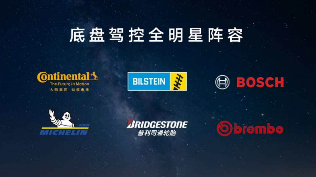 这次刘涛直接公布了底盘的供应商阵容,包括德国大陆的空气弹簧、德国倍适登的DampTronic电磁动态阻尼调节系统、德国博世的电子转向系统、法国米其林/日本普利司通的高性能轮胎、意大利布雷博的制动系统……豪华程度堪比全明星赛。