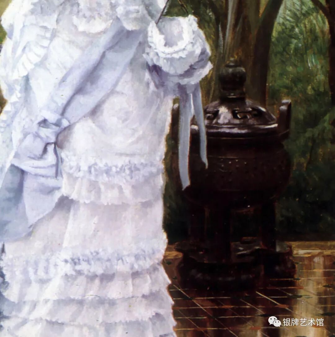 蒂索擅长表现时尚人物的生活场景,批评家约翰·拉斯金曾批评其作品为"只不过是庸俗社会的彩色照片"。