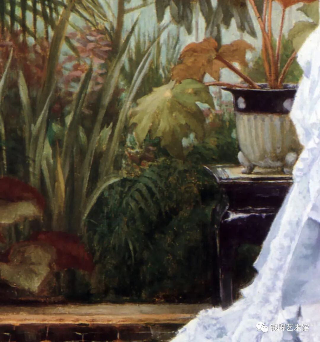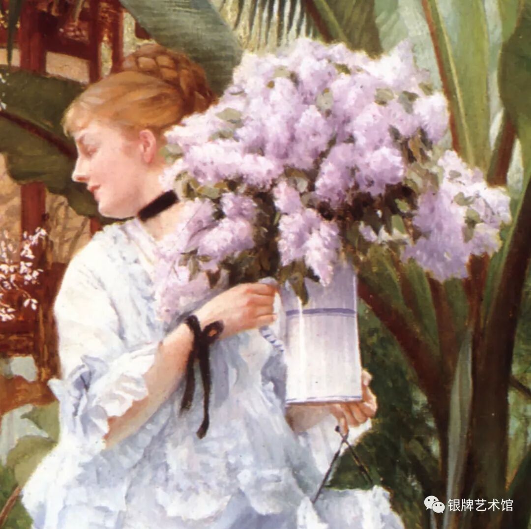 大家好!今天给大家介绍法国画家蒂索 创作于1875年的油画作品《丁香花束》,这幅画收藏于伦敦理查德·格林美术馆。