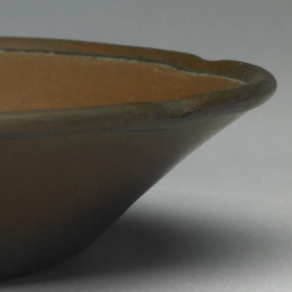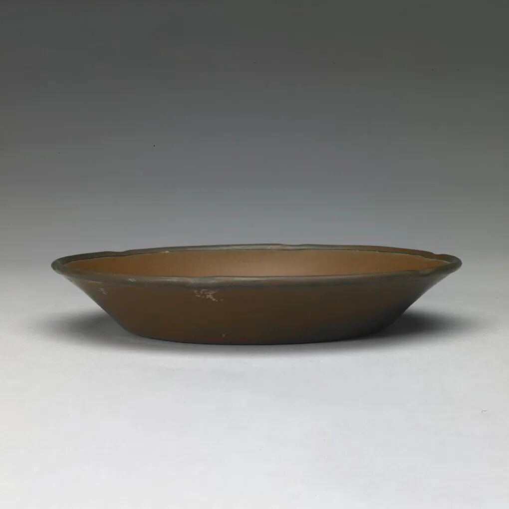 此盘造型端庄,线条明朗。六瓣花口为此器平添几分美感,属于定窑酱釉中的精品。也是宋代花口盘的基本造型。