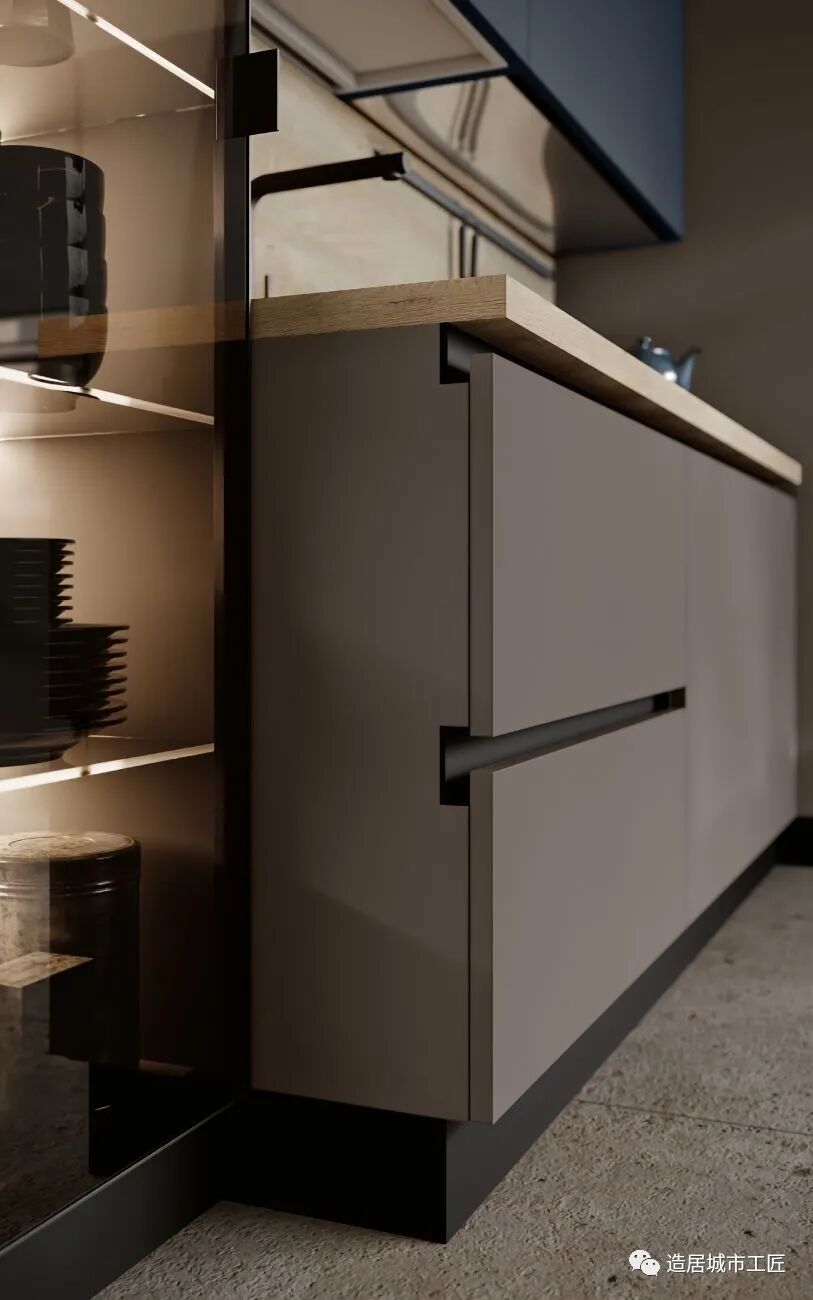 定制柜:成熟的定制柜工艺,可以根据业主需求、厨房布局进行量身定做,将厨房内的每一寸空间都利用到极致,避免了空间的闲置和浪费。