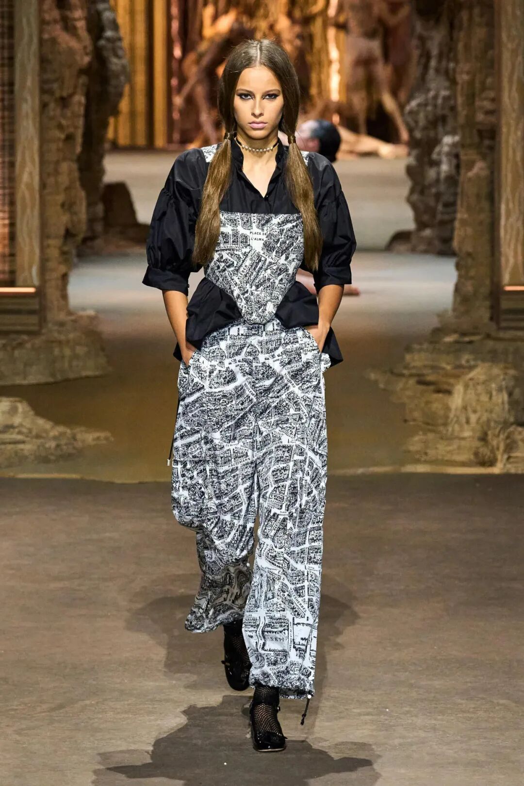 紧身带、裙撑等昔日的古典宫廷服饰成为了主脉络,伴随着由Guy Debord所绘制的旧时巴黎地图以印花的呈现。