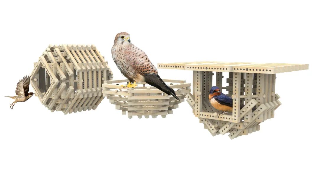 与寻常使用的鸟巢不同,《Pinwoo-趣味积木鸟巢》以可降解竹板作为材料,将积木作为鸟巢的原始形态,在“搭建”的过程中留有充分的互动体验机会,也涉及到了分享关于建筑、力学知识的场景。这件设计作品也提出了非常有意思的思路——“人鸟共建”。