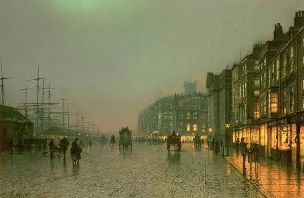24岁时辞去了他的第一份工作铁路职员,投身艺术。“月光”成为其作品一个标志。作品包括烟雾污染和潮湿的雾,19世纪英国工业城市自然环境的体现。