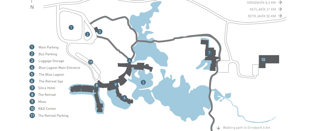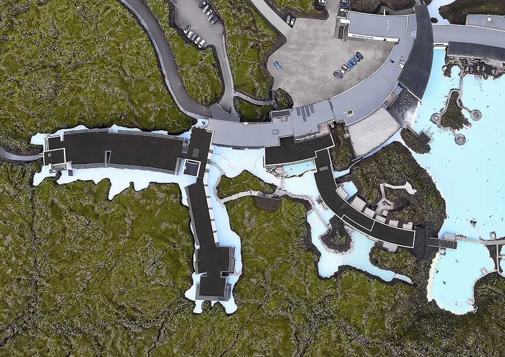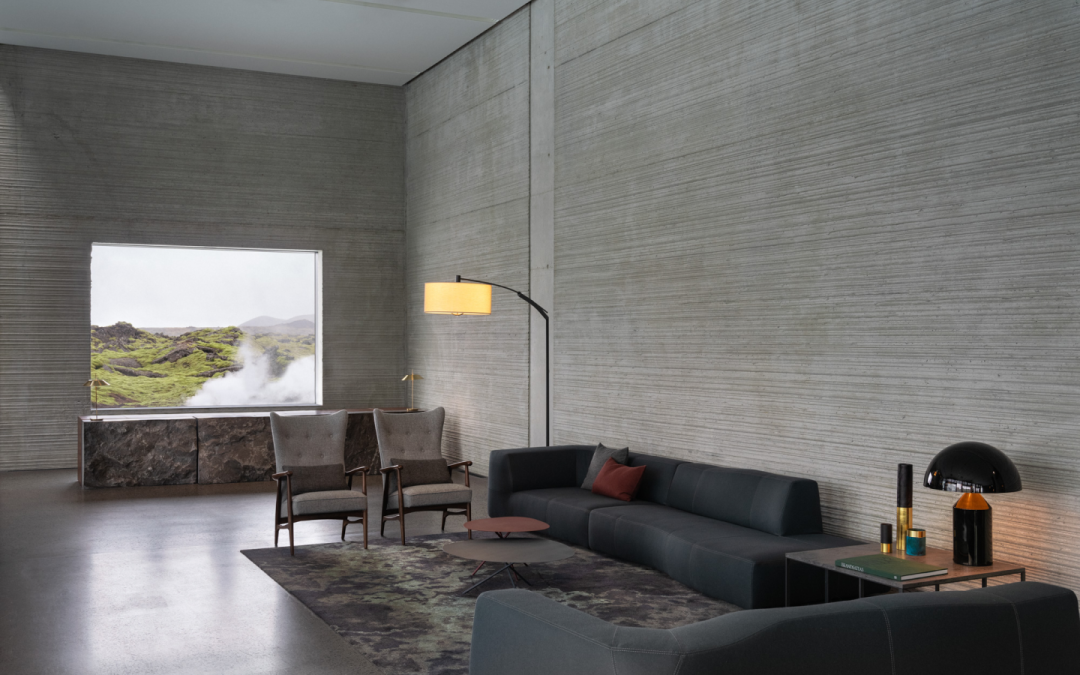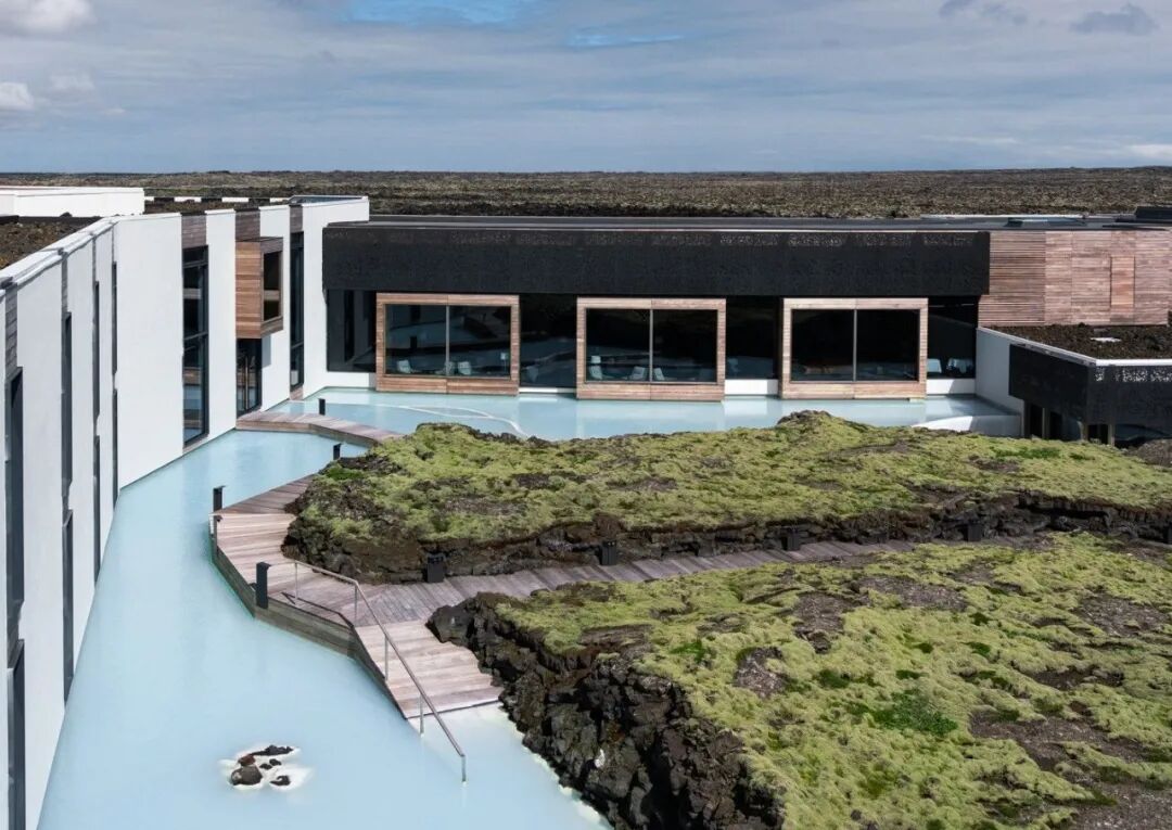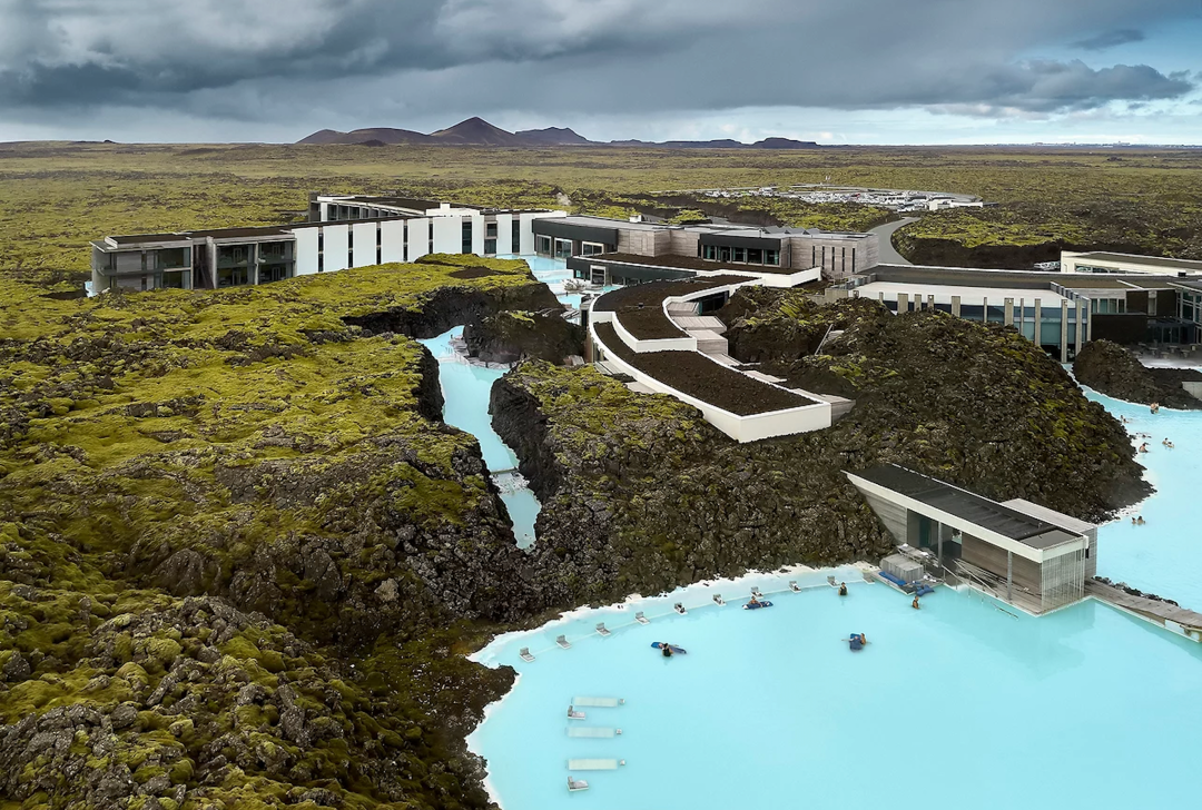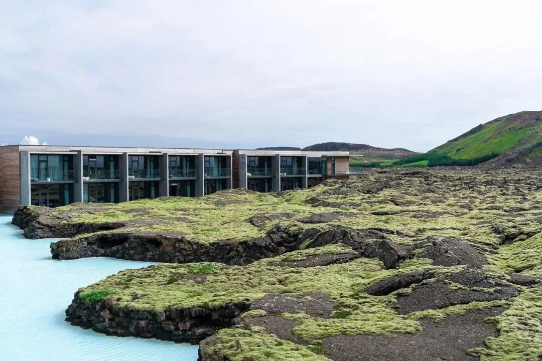 蓝色泻湖周围的景观——Illahraun 熔岩场——是公元 1226 年从地球上喷发而出的一片被苔藓覆盖的火山岩。为了保护熔岩和精致的、数百年历史的绿色植物,在 Retreat 的建造过程中实施了严格的指导方针。虽然建筑本质上是破坏性的,但人们付出了巨大的努力来减轻对令人叹为观止的地形的破坏。还创建了路径,使游客能够在熔岩区漫步,而不会损害精美的花卉和火山特征。以周遭苔藓、熔岩、泻湖等自然景观为主题,不仅能饱览冰岛绝景,更能就近体验蓝湖温泉。