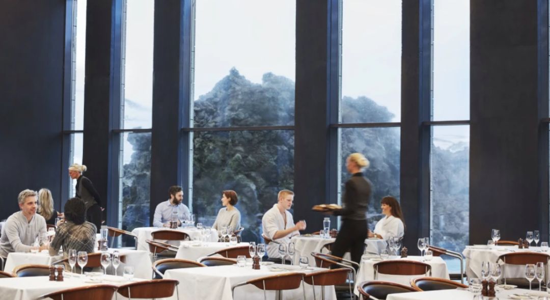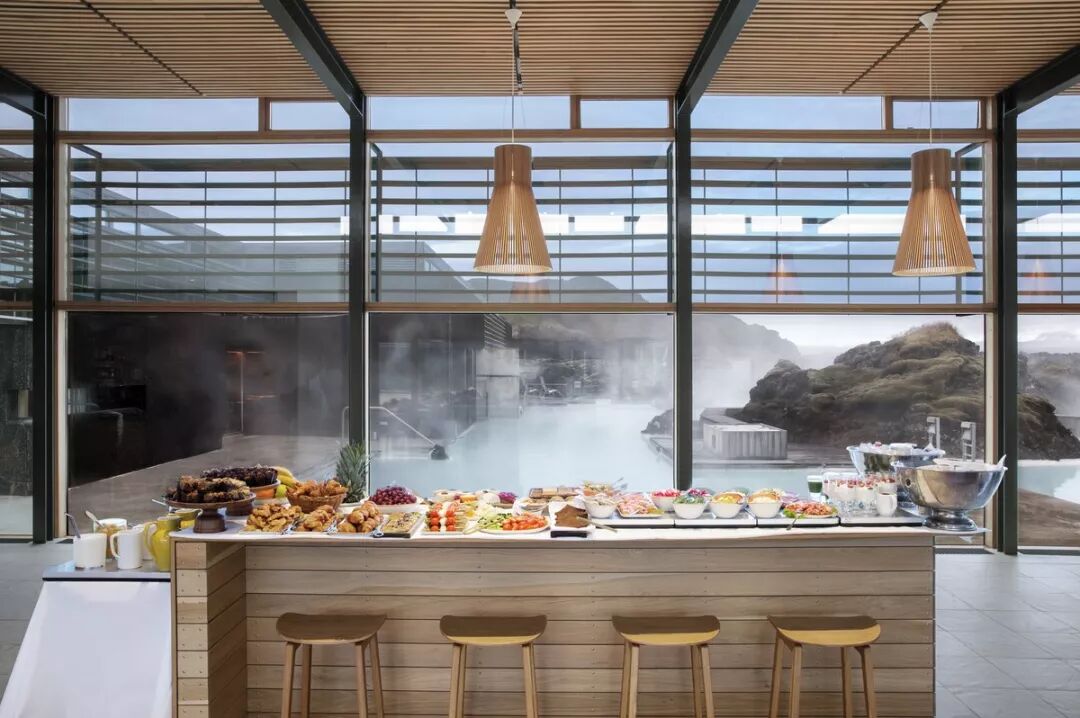 熔岩餐厅:美食家在世界奇观的海岸上用餐。游客去冰岛预定最多的餐厅,只有预定了轻奢型的蓝湖体验票才能提前预约时间用餐。