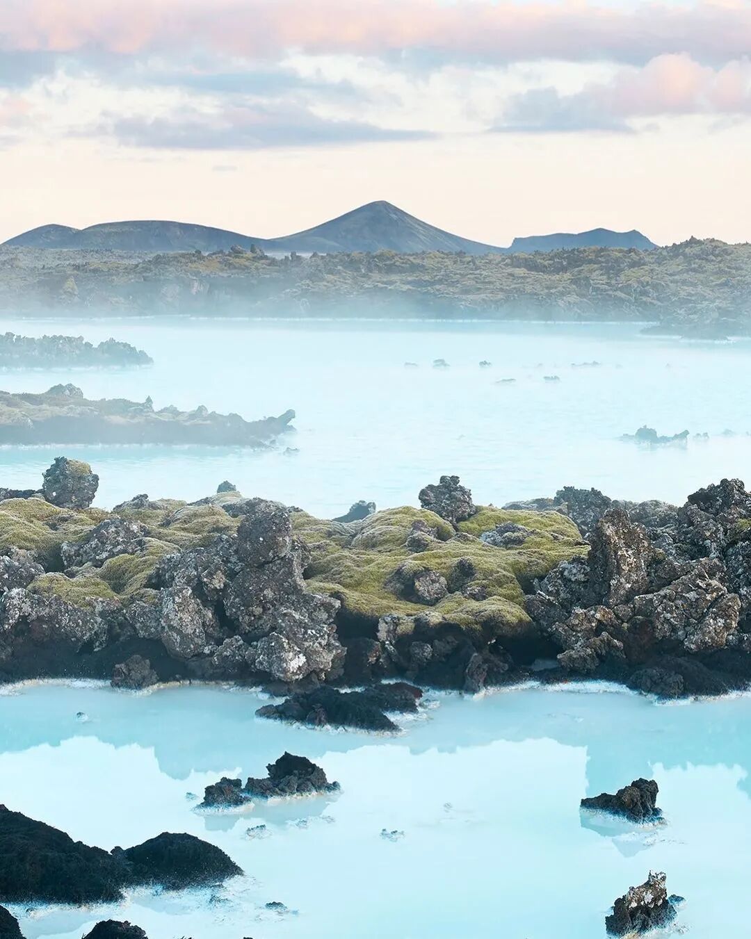 冰岛被誉为「冰与火之国」,外表冰寒,內在温热,冰川、苔原、峽谷、火山… 等千变万化的原始地貌。冰岛蓝湖Blue Lagoon Iceland 世界最大的露天温泉,被称为地球的一滴热泪。由海水被天然地热加热,加上当地发电厂所排放的温水而成,蓝湖的水温终年维持在摄氏37-39度,富含二氧化硅、藻类和矿物质,在阳光的折射下呈现美丽的蓝色。