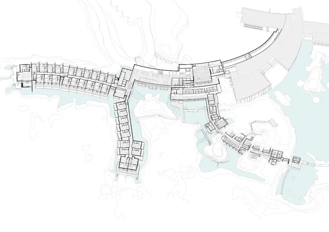 冰岛本土事务所Basalt Architects玄武岩建筑联合意大利Design Group Italia (DGI)共同完成了酒店的设计。占地 400,000 平方米,水疗中心、地热泻湖、餐厅和被蓝色泻湖标志性海水环绕的 62 间套房酒店。是自然、科学、设计和健康的交汇之地,创造了一个温暖、奇迹和幸福的世界。通过连接其所有体验区的路径,客人可以在 15 分钟内穿越这个非凡的水疗度假村,沿着蓝色的水道穿过充满地热、地质和花卉现象的原始景观。