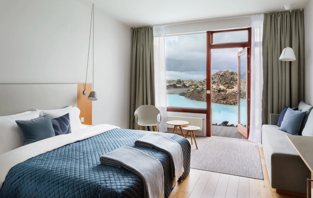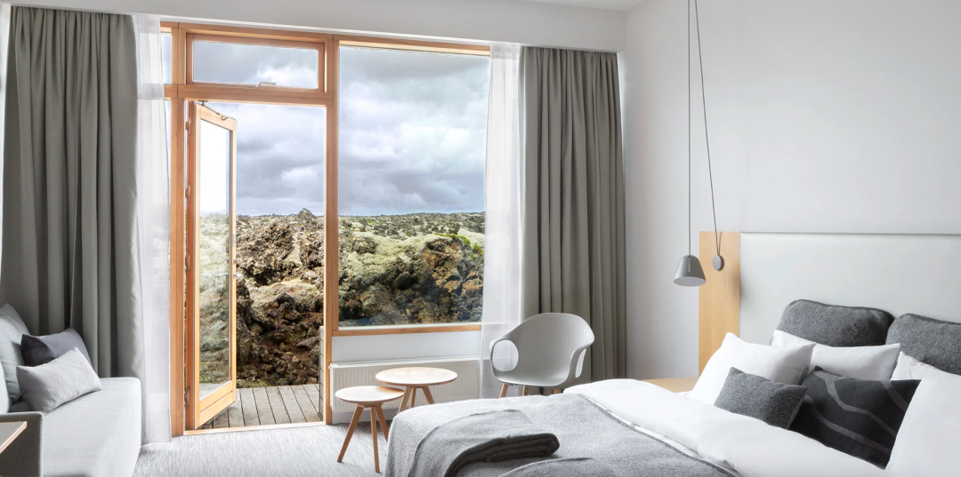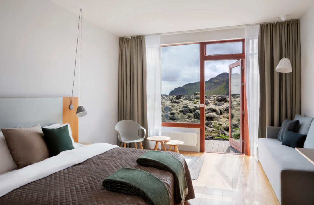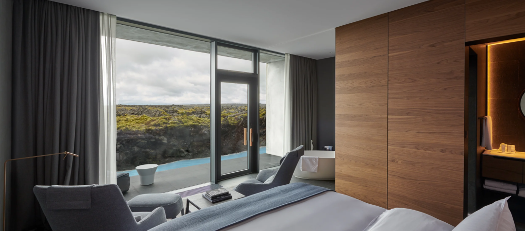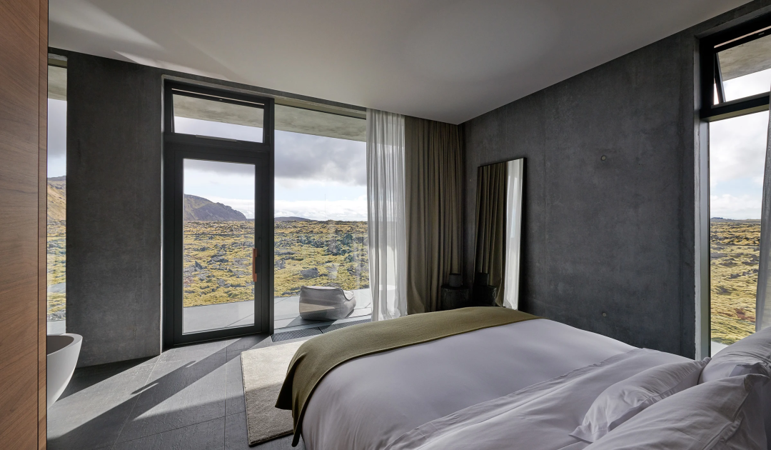熔岩豪华房:Lava 豪华客房享有苔藓覆盖的景观或为蓝色泻湖带来生机的地热资源公园,在奇妙的环境中带来温暖和幸福。