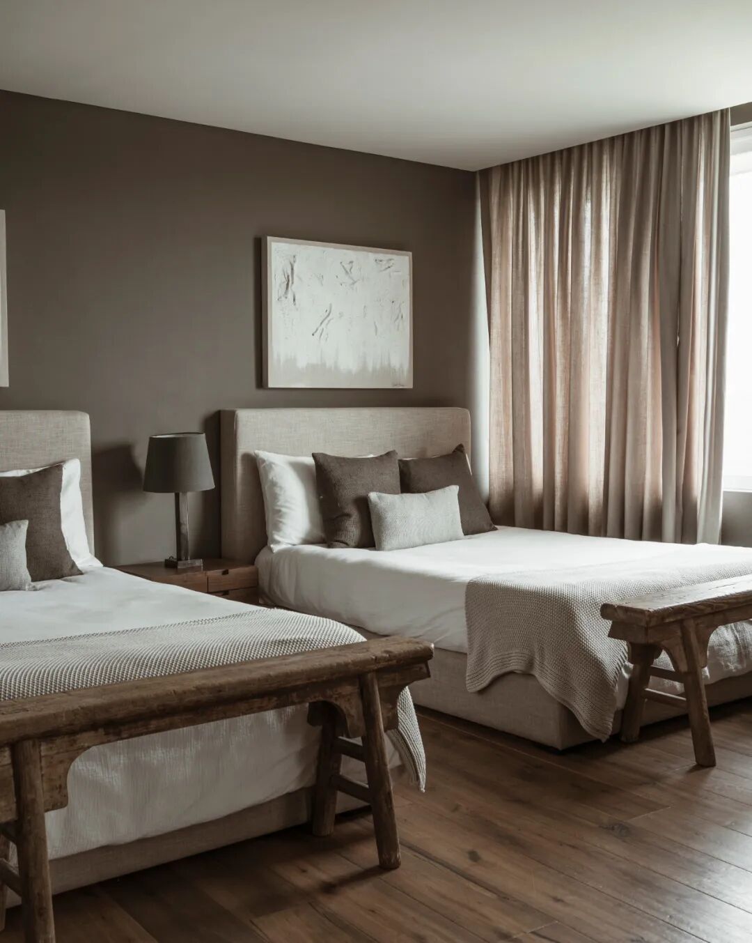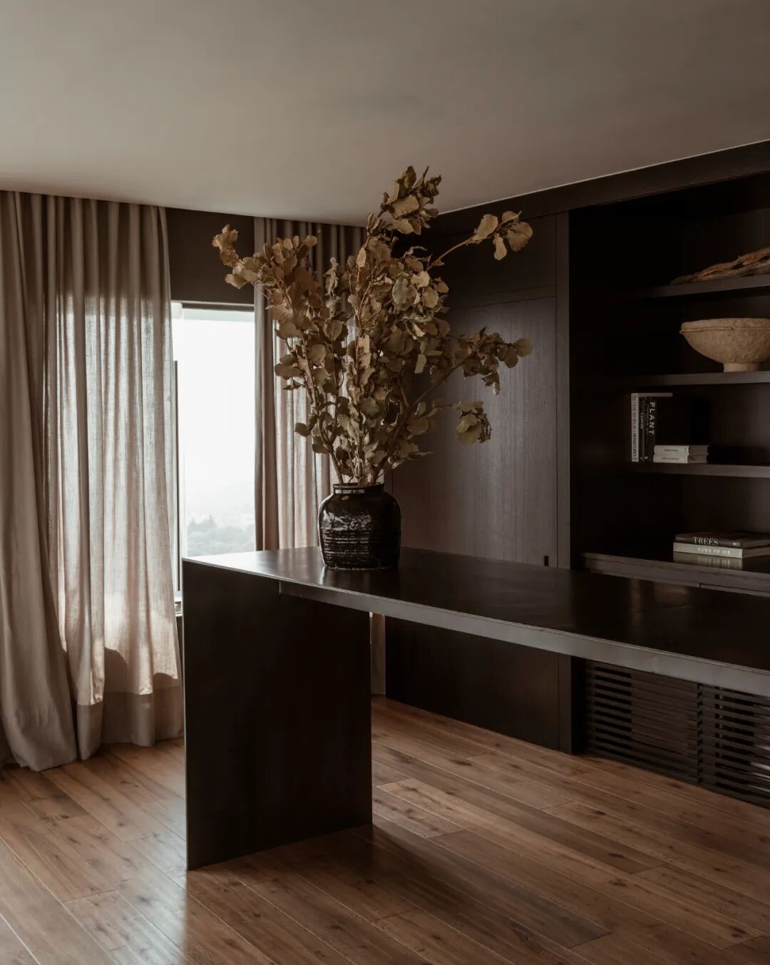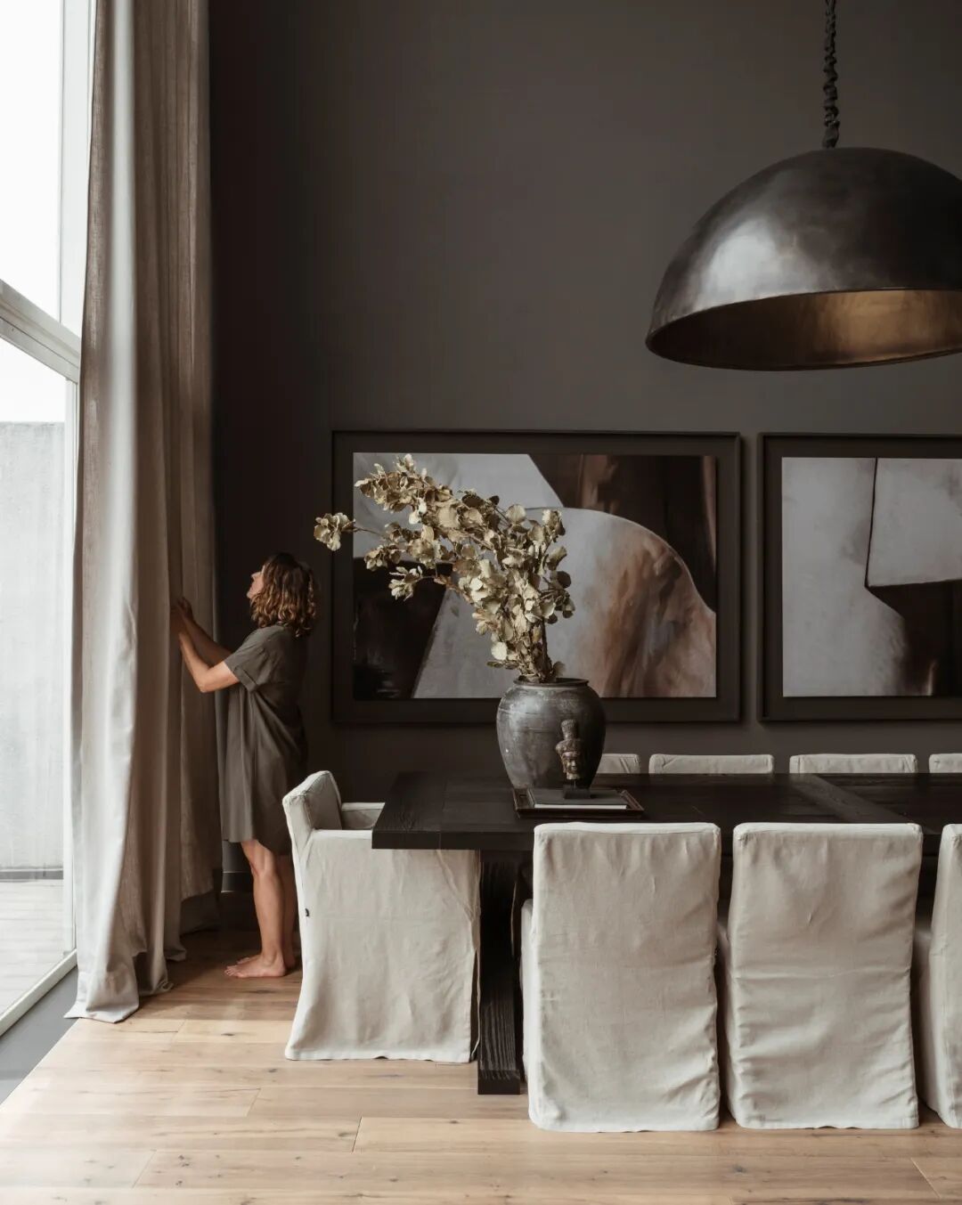 Dıreccıon also selected lighting fixtures, artwork and textiles. Fabric of choice was linen for its natural essence attuned with the neutral color palette and materials used for this setting.