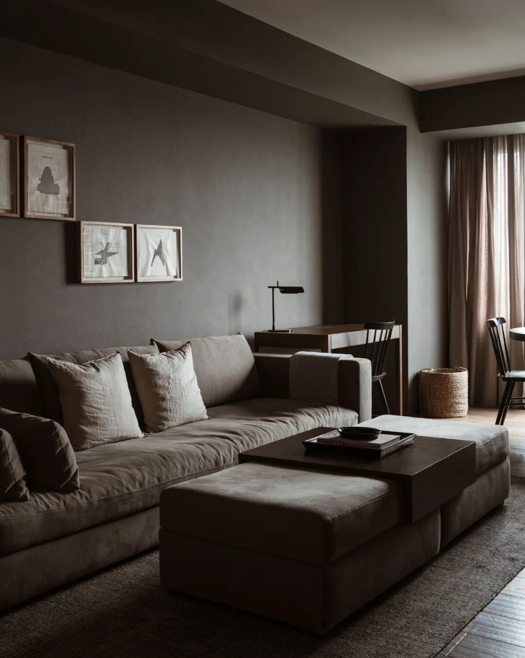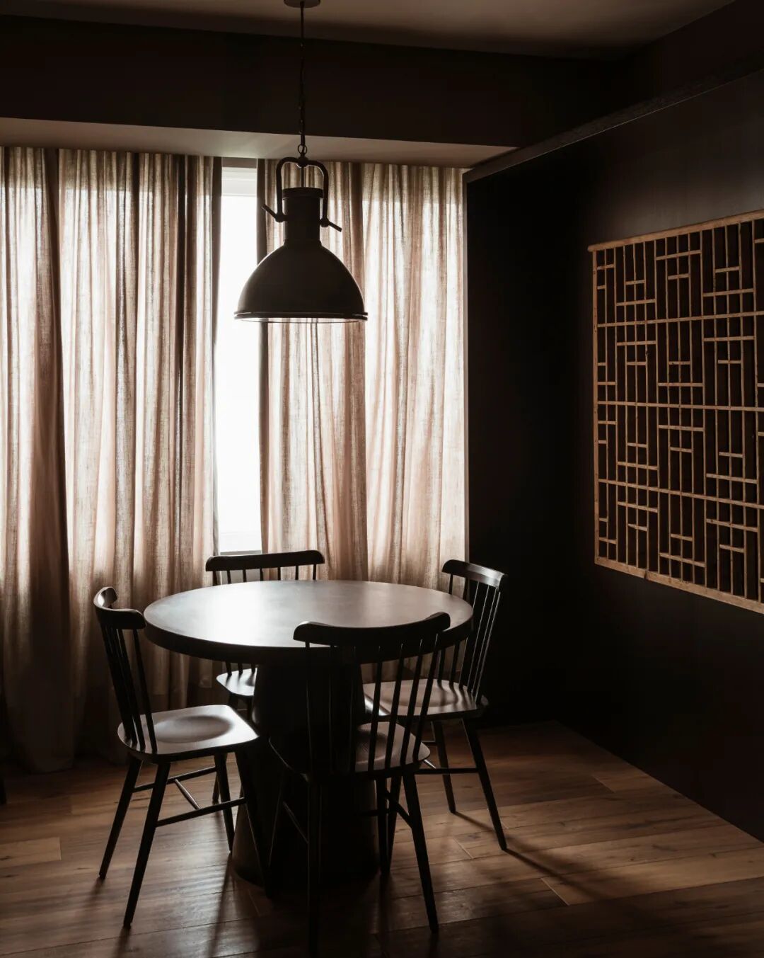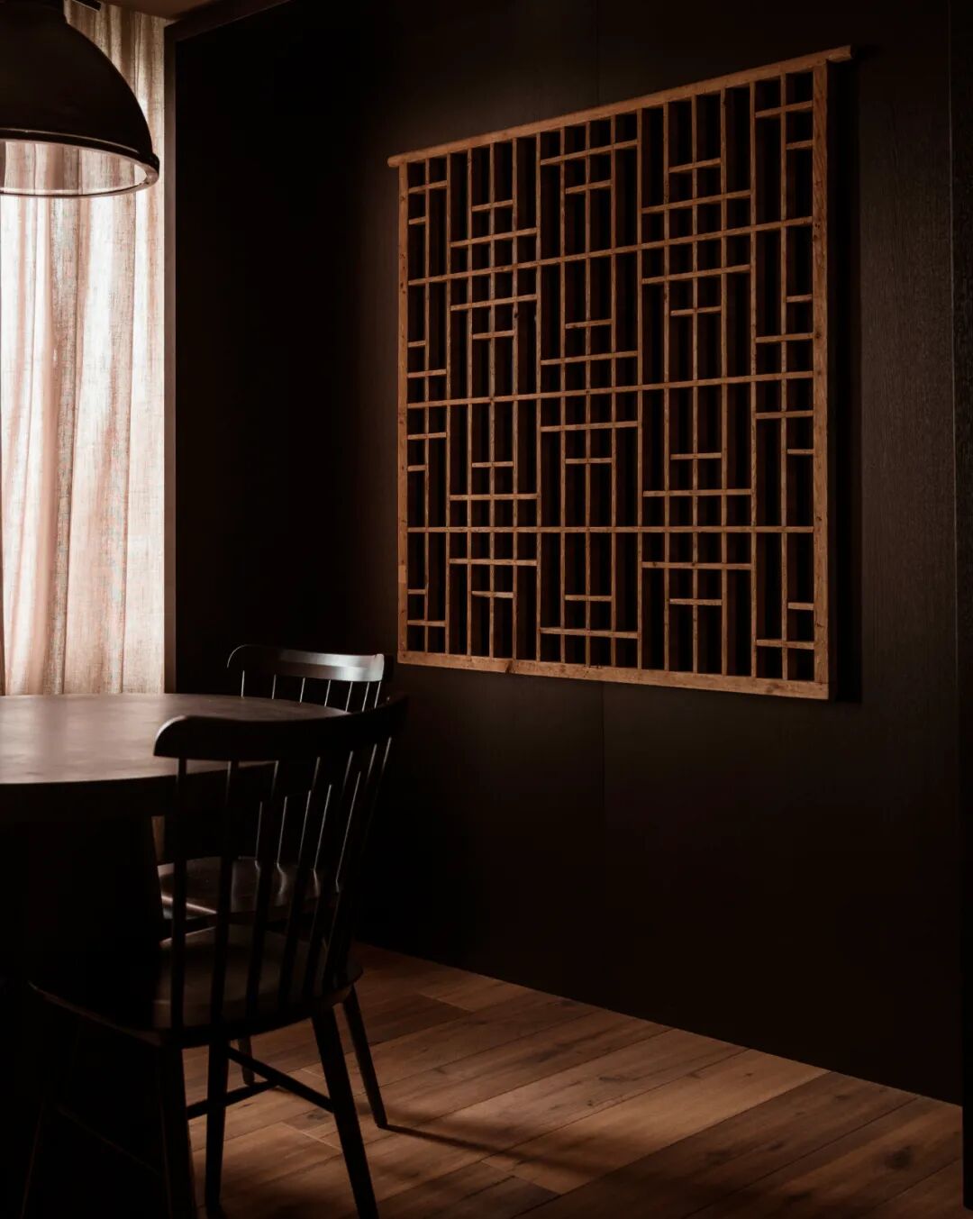 墙壁被漆成灰色,安装了欧洲橡木地板和霍尔姆橡木门和搁架。新设计实现了家庭娱乐和休息空间之间的平衡融合,每一个都邀请其居住者简单地。。。色调的变化帮助空间的尺度变得更加内省。整体氛围变得友好,空间感和约束感平衡。