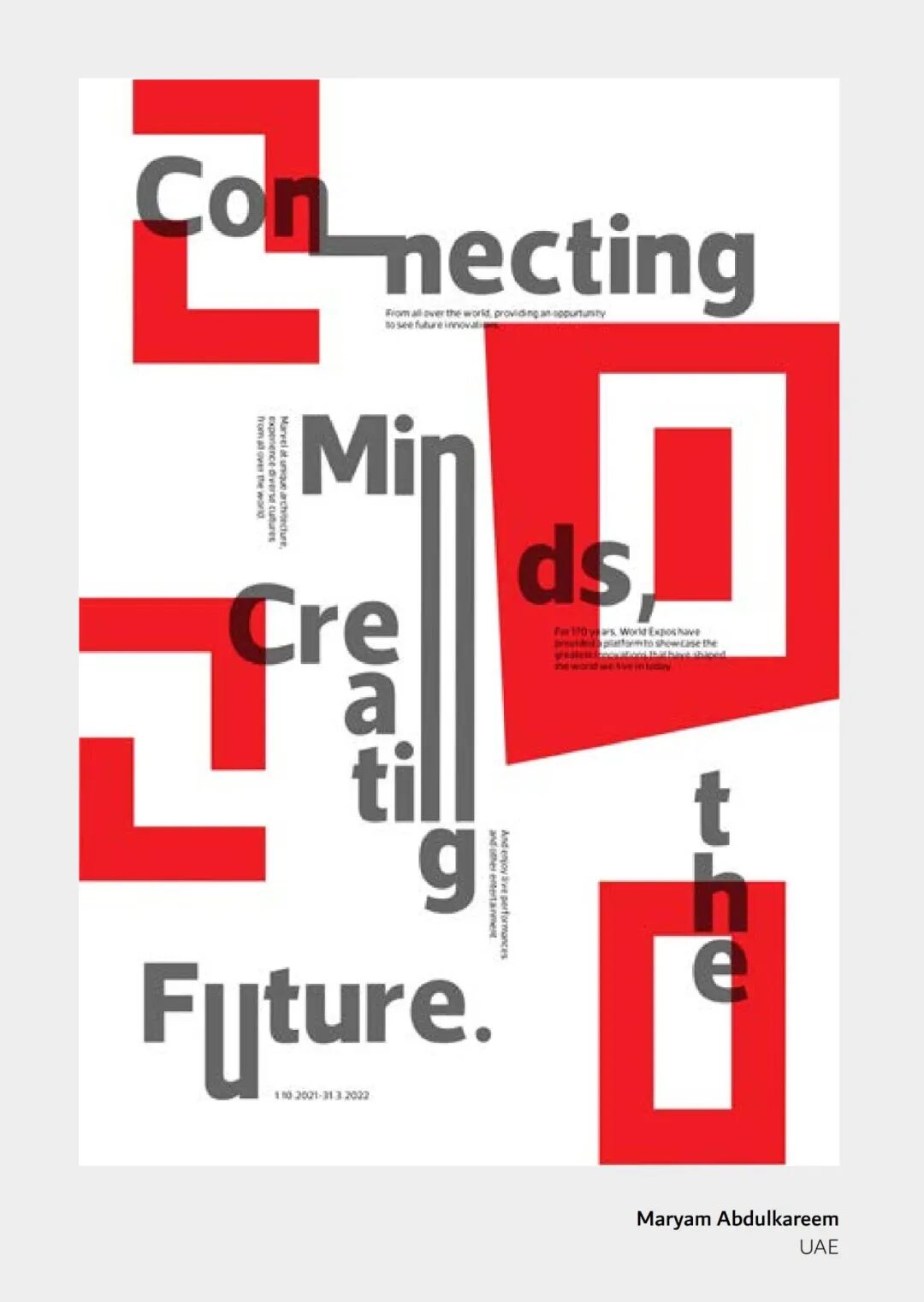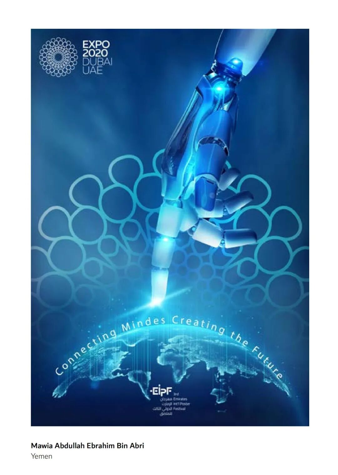 在第三届世博会上,EIPF从192名设计师和19名学生中挑选了反映2020年迪拜世博会主题“连接思想,创造未来”的海报图片,以庆祝人类的辉煌和成就。
