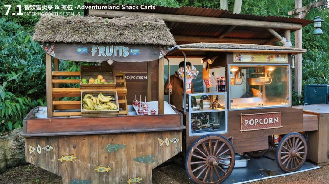 乐园里的售卖车&摊位是提供餐饮或者小商品售卖的服务设施,一般为临时构筑物,也有些以售卖车的形式出现,可灵活移动。这些售卖车&摊位一般可以分为两大类功能,一类是餐饮,另一类则是小商品售卖(画像、画脸等摊位包括在内)。下面我们整理了全球迪士尼乐园里的售卖车&摊位,用实例解说。