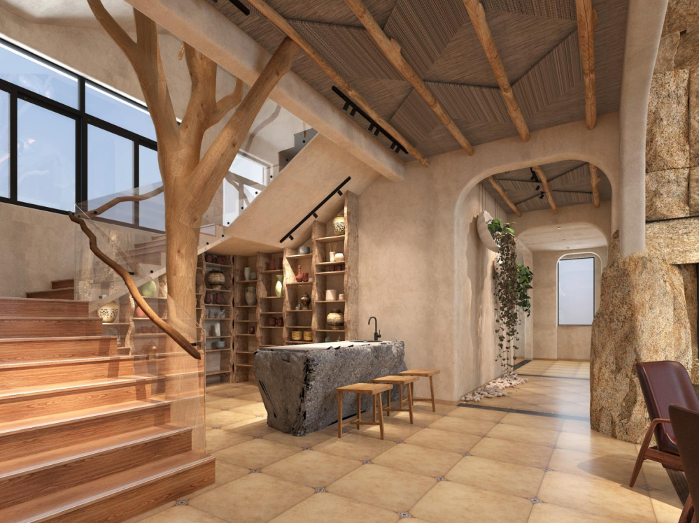冯仍先生经过多年在酒店民宿设计中总结经验积累,率先提出极具个人特色的“侘寂田园风格”设计理念,强调当下现代人对“归园田居”的心态与生活方式的渴望与追求,侘寂田园风格是一种不刻意突出装饰和外表,强调事物质朴的内在,并且能够经历时间考验的本质的美。其中残缺之美极具代表性,诠释出朴素、安静的事物的素雅、自然、粗野之特性,塑造出一个轻盈的侘寂田园风诠释空间的设计。