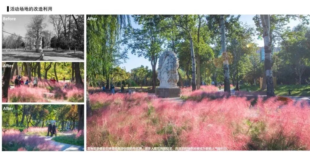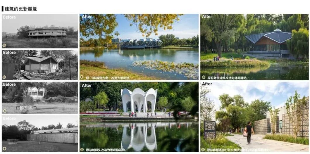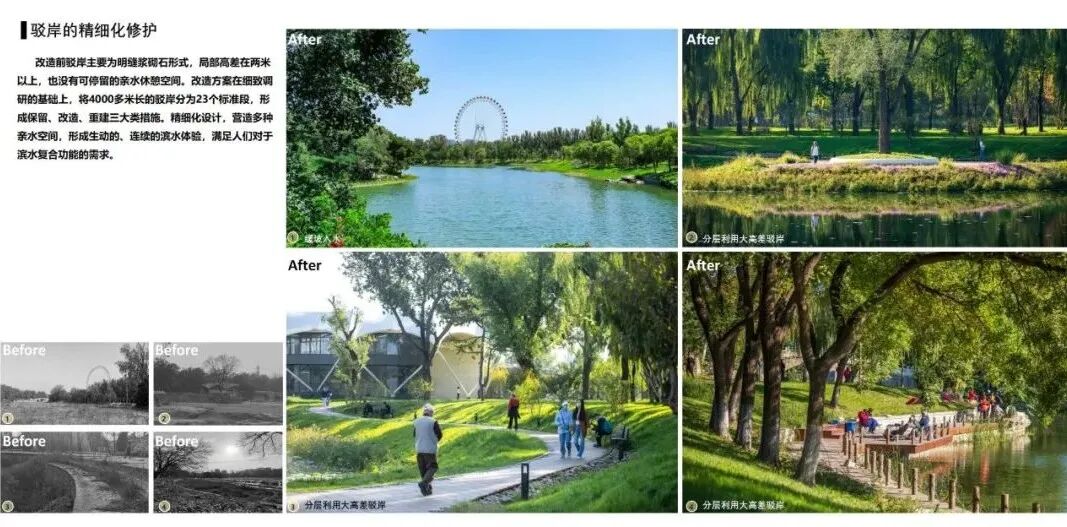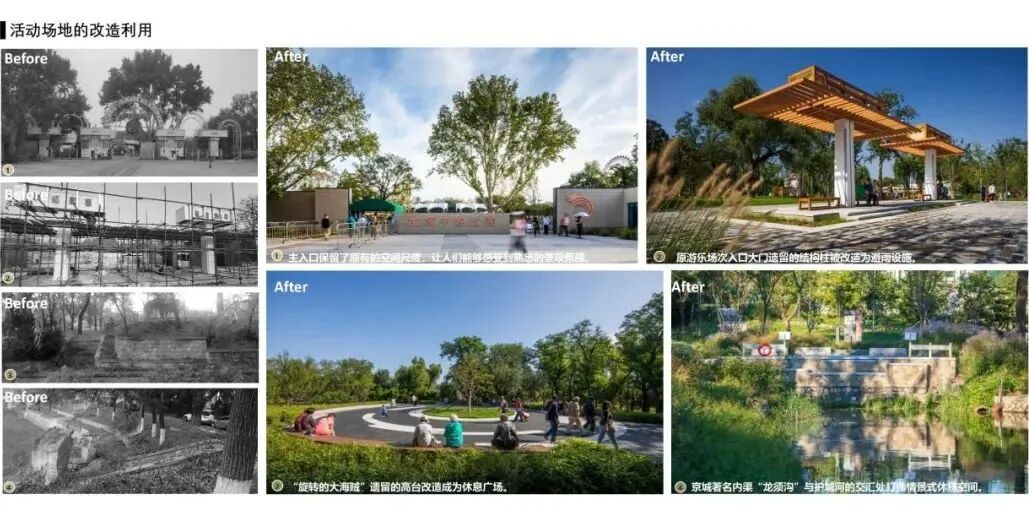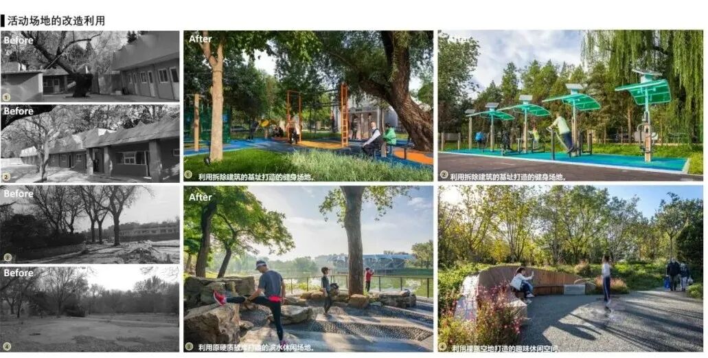 重视公众参与,切实满足人民群众在生态供给、生态产品和生态效益上的需求。保留场地的特别记忆、交通系统的复合功能、活动场地的改造利用、驳岸的精细化改造、建筑的更新赋能、固废物的再利用等在功能上贯彻了全龄友好化建设。