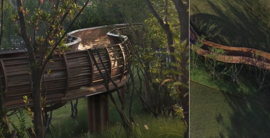 在场景打造上,打造静则归心静思书院,景墙与旱溪雾绕其间,起承转合营造静谧林间仙境。打造多活动开放性的艺展空间,作为公园承上启下的功能节点,它既是未来使用者的集会、艺展中心,也是读书静思陶冶心灵之所。打造动则潮乐融汇场,融入多维全时全年龄段体验活动,打造全季节戏水空间,展示生活场景化。儿童乐园,定制专属沈阳形象IP,陪伴儿童成长。结合儿童游乐创造立体空间,打造林遇浮桥,串联多维立体空间。
