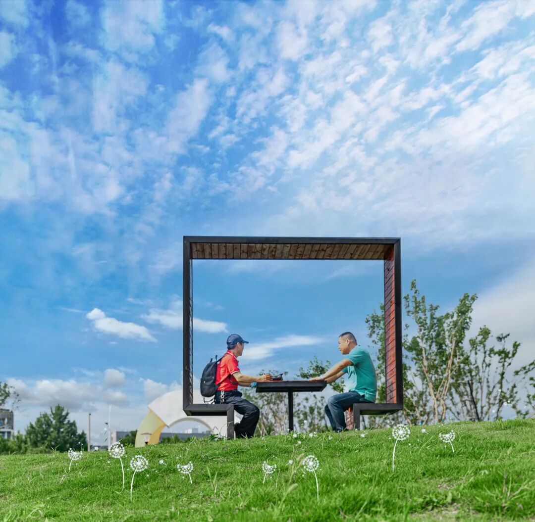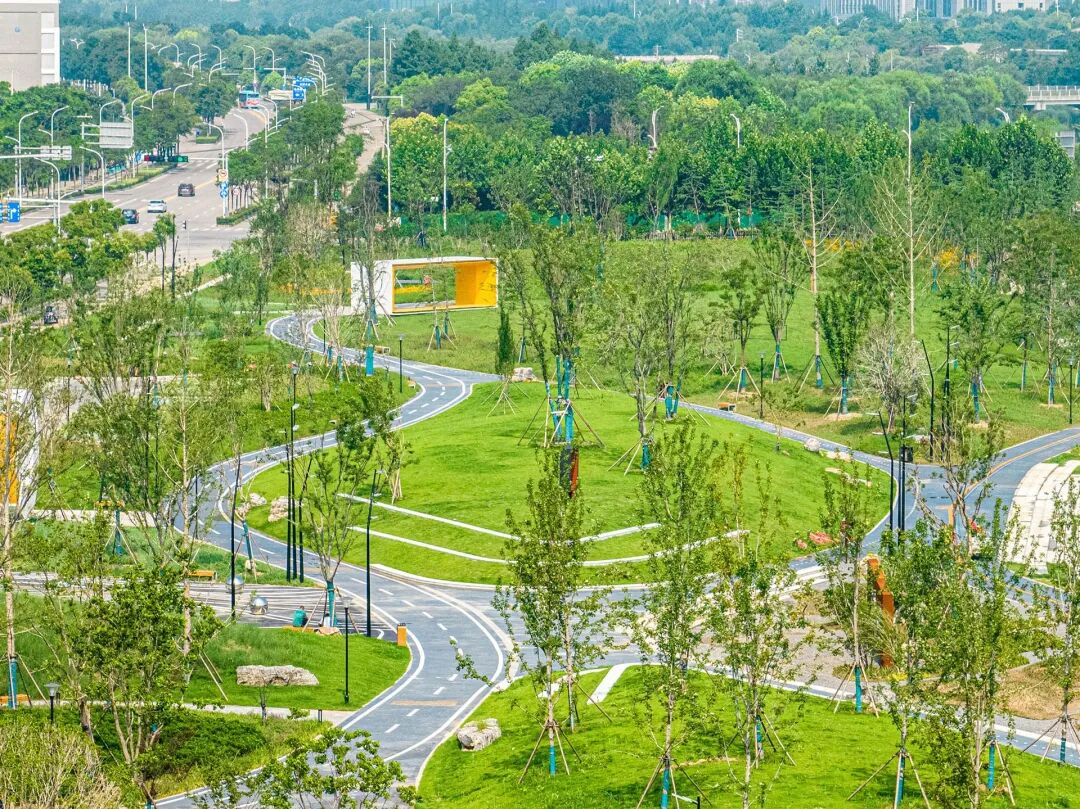功能重塑,构建绿色可持续场地。设计大胆地将场地约20%的面积以开放式草坪空间的形式呈现。作为多功能开放空间,功能植入上赋予多种变化,城市露营、主题活动、婚礼庆典、展销经营等为后续公园运营增加了更多的可能。