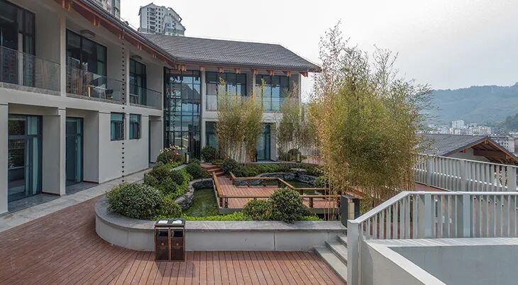 在兴隆老街的景观设计中,设计师为老街入口的观景栈道赋予了龙的形态,同时为街尾广场赋予了凤的姿态,让“龙形千步廊”和“凤凰广场”首尾呼应,以高科技互动式灯光营造出充满魅力的氛围体验。在“鹿鸣苑”的设计中,设计师从《诗经·小雅·鹿鸣》中提取文化元素,为五个院子分别赋予“鼓瑟”、“周行”、“德音”、“旨酒”、“鼓琴”的内涵,以宾主尽欢的宴饮文化,彰显出酒店接待贵宾与政府“筑巢引凤”政策的深刻内涵。