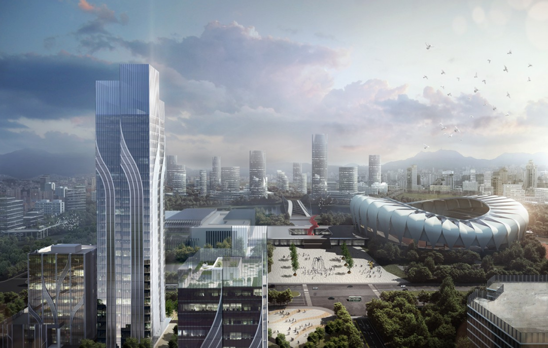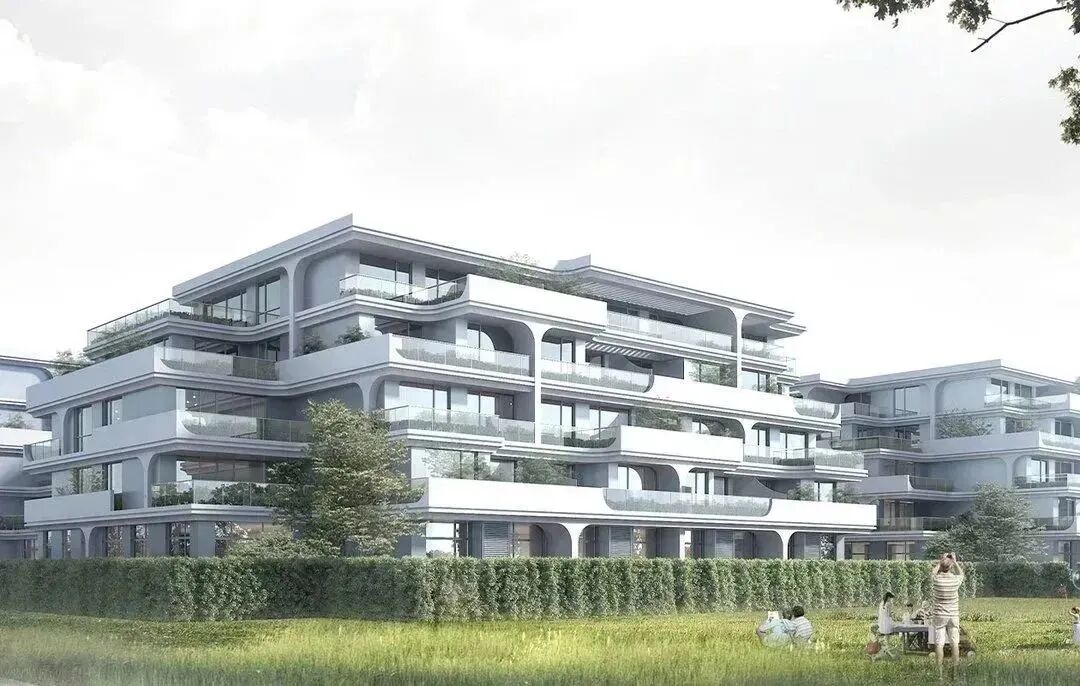 结合上位规划,地块中将引入一条生态景观轴,以“生长蜕变,链接未来”为主题,将这条生态廊道设计成植物般自由生长的形态,并延伸至各个组团,形成尺度宜人的室外交流空间。外立面形象塑造上,也呼应了“生长”这个理念,向上扬起的曲线勾勒出向上生长的态势。