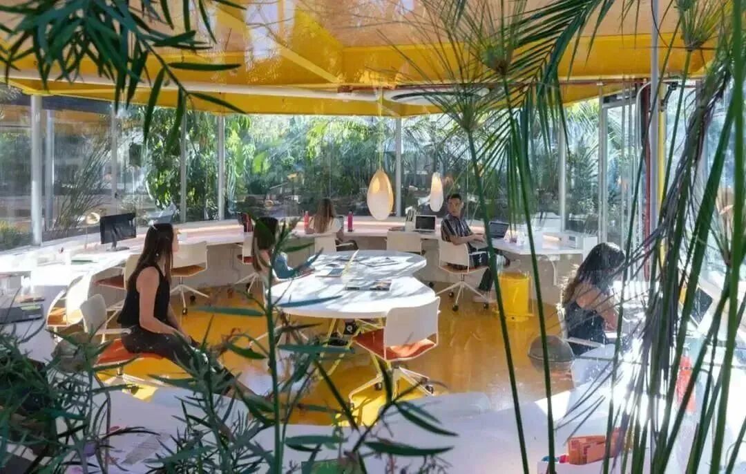 holLA是Second Home在好莱坞的新办公室,融合了加州的一些经典元素。90800平方英尺的场地中包含两栋既有建筑,其中一栋双层建筑由非裔美国建筑师Paul Williams于1964年设计,具有经典的洛杉矶新殖民主义风格——该项目对这座建筑进行了修缮和改造。作为整个园区的核心和主要入口,大楼首层包含了320个自由空间,二层包含200个工作区,另有咖啡厅、酒吧、餐厅、活动会议大厅、休息区域和露天平台等一系列公共空间分布在建筑各处。