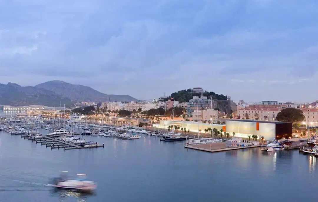 “卡塔赫纳”是一个长建筑,一个生命体,传承着作为城市和海洋边界的卡塔赫纳港口的历史遗产,它是卡塔赫纳的一个港口,城市与海洋的边界。沿着这条狭长地带,可以为城市设计一个非常舒适的散步路线,人们可以每天沿着边缘行进。事实上,这是我们所鼓励的,是我们在建筑中插入的东西,在一个连续的维度中,似乎挖出了一个人造海滩,但实际上这是一个历史的延续,因为老的巴特尔海滩就在这里,就在这个地方。港湾是人造的,不是海滩。这个重造的海滩坡道逐渐将我们淹没在水线以下,有码头的水平线作为恒定的参考。在这一点上,我们不再属于外面的世界,而开始属于我们自己,我们在运动,我们在散步,在为我们自己保留的210米规模的场地上工作。我们拒绝单调的坚硬的物体出现在海港;相反,我们寻求完全相反的东西:半透明、细腻、轻盈、水生生物般的材料;这与Luigi Nono所定义的“水上音乐空间”呼应。