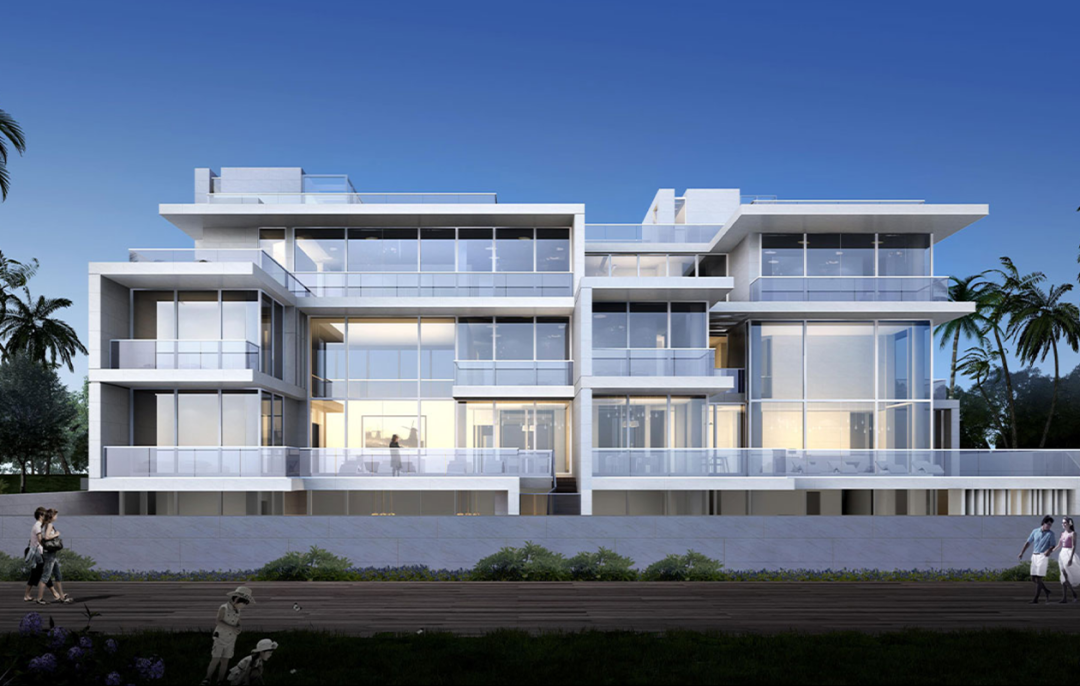 项目借鉴当地岭南民居典型布局模式 “三间两廊”,打造出以客厅为中心,三重庭院“入户礼仪庭院,复合立体庭院,内庭院”环绕的多样化空间感受。建筑以12米宽两层通高的超大横厅为中心,南北向形成两个半围合的“L”形,自然形成南北两个主庭院,拉长了建筑与庭院间互动的开敞的景观面并弱化了建筑体量。通过水平大挑檐以及通高落地玻璃的设计,让建筑形态更为轻盈通透。为每一个主要空间及套房设计了阳台或露台,实现室内外空间的渗透及延伸。