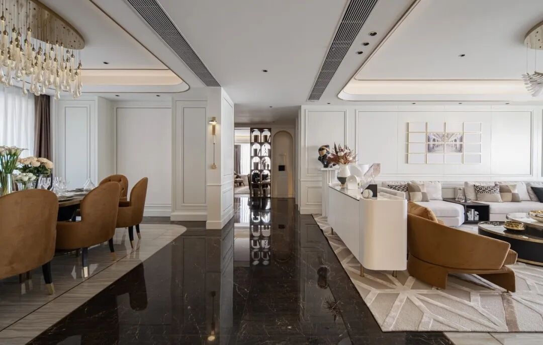 整体设计以文艺复兴为灵感基础,融入现代人对当代艺术广泛和多元化的艺术追求。设计师在文艺复兴基础上提炼法式风格为基底,将french molding的装饰板条作为主线,搭配高雅清幽的白色基调,恰到好处的的艺术品点缀其中。法式美学和复古优雅的高雅端庄浸满整个空间,感受色彩所传递的美学与精神,给人一种浓郁的古典文艺气息。无论是细节的装饰还是颜色的运用,都将整个空间打造得活力感十足。