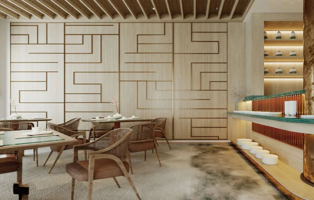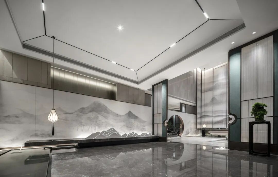 春和景明售楼中心位于京杭大运河北起始点——北京通州。设计师将独特的运河文化融入设计之中,把“水墨运河”的设计概念贯穿始终。整个售楼中心的布置以沉浸化的体验为主导,以场景化的塑造代替功能空间的堆砌,从景观到室内,再到室内的布局——无论是饰品、画品还是地毯的纹样,无不诉说着运河流水的故事。同时,“通州八景”含蓄地融入其中,运河四季的色彩运用国色中的绿色和黄色点缀,传统与现代在此对话,营造出既有传统气韵又有当代风貌的空间体验。在此基础上,为了迎合目标客户的诉求,规避华而艳丽的色调组合,在高级灰中融入少量国色,形成动线流畅、视野开阔的空间感受。