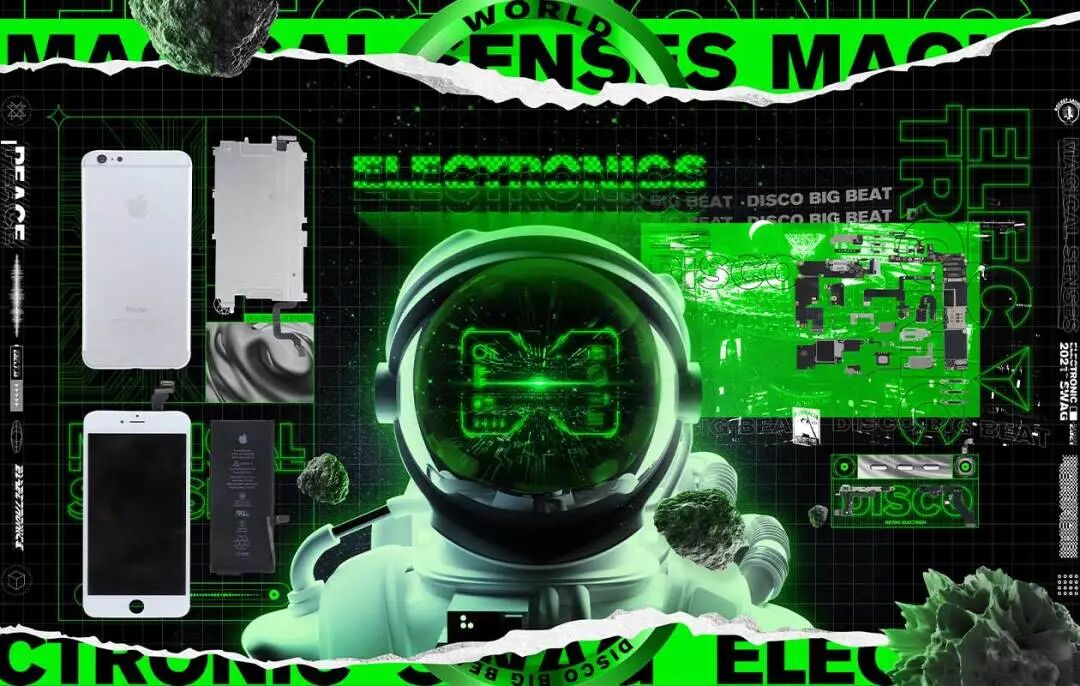 该系列手机装裱画分别以“太空旅行”和“Free play”为主题。通过宇宙探索和复古电玩漫画引起年轻人的共鸣。为了适配不同机型,其通版背景采用了随性、包容的设计,用户可以将手机部件放在画面中任意区域,都能与周围元素相互融合,为用户提供了更自由的DIY空间。