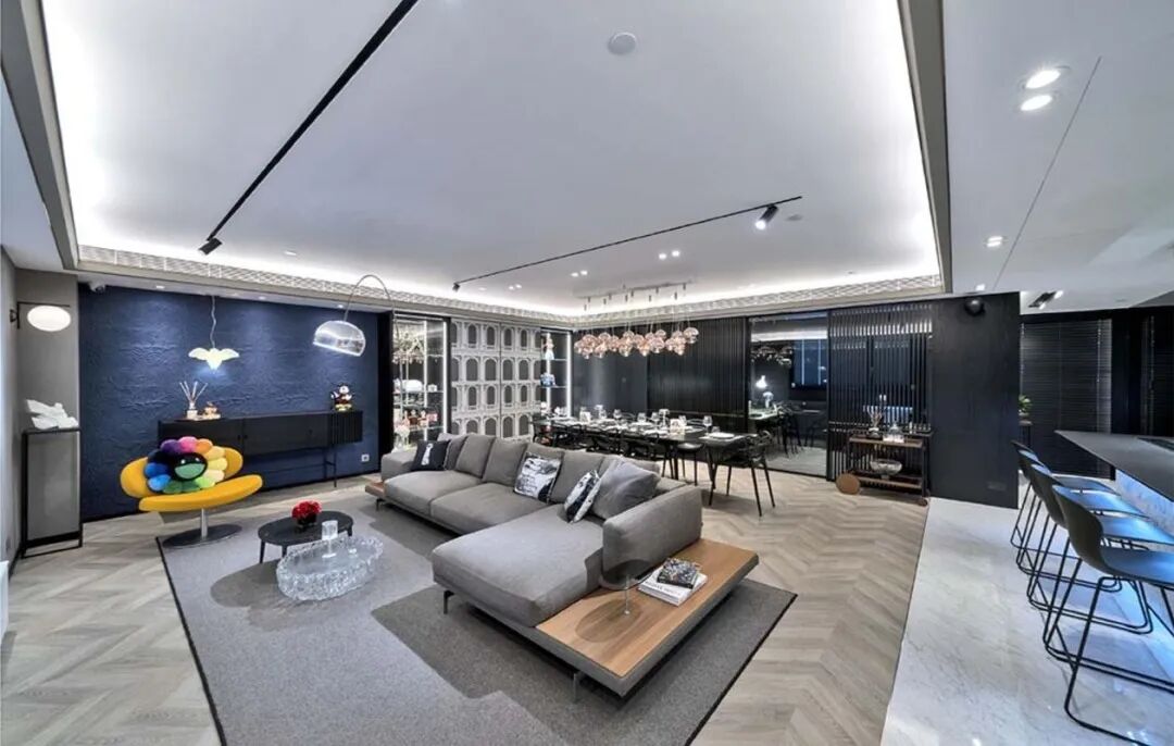 这原用作公司办公室,后来重新打造,现成为展示豪华公寓的设计概念店。作为一所概念店,期望向参观者展示各种设计元素,包括材料、光、傢俱或其他各种设施,通过将不同的线条、形状和照案组合,创造了许多不同的视觉效果及概念。