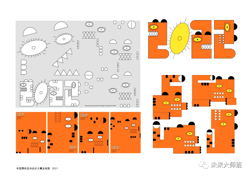 上课期间可按自己喜好创作,选择第6届德国火花奖、2022塞浦路斯海报三年展、第十届索非亚国际舞台海报三年展、墨西哥双年展、2022 EPB厄瓜多尔海报双年展、第12届法国 Poster for TOMORROW 海报设计大赛等相关赛事创作,由三位导师负责赛前指导和点评。