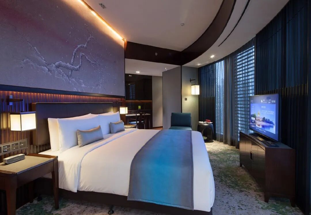 而且客房的的设计理念也是来源于明代名士文震亨著名的造园设计《长物志》。不得不说,酒店的客房设计真的是将新中式的风格发挥到淋漓尽致。不管是时尚摩登的年轻人,还是成熟稳重的商务人士都很难对这个酒店有不喜欢的感觉。